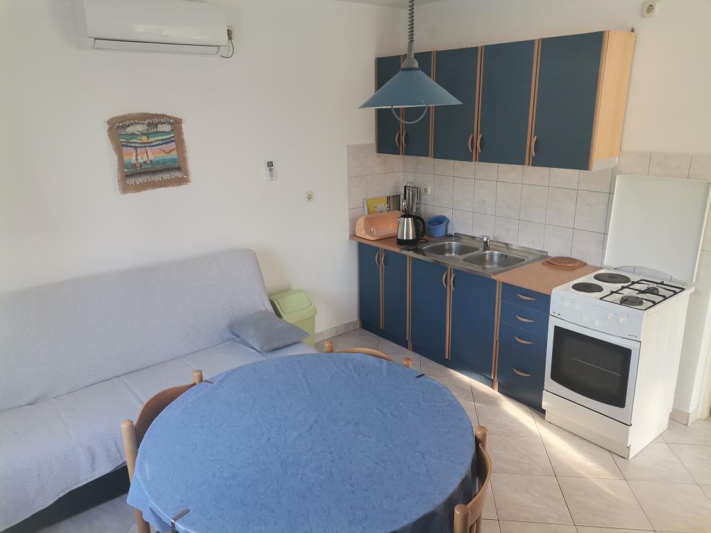 Iznajmljujemo 2 dvosobna apartmana od 45 m2, smješteni prvi red do mora, u mirnoj i opuštajućoj uvali Dumboka koja se nalazi ispod naselja Dragove na Dugom otoku, u kojoj se nalazi 5 kuća. Uvala je idealna za odmor od stresa nakupljenog tokom godine, more ispred kuće je kristalno čisto za kupanje bez granica, a dovoljno duboko da možete pristati sa vašim brodom! Apartman 1 (☆☆) Kuhinja / dnevni boravak, 2 sobe ( obe sadrže bračne krevete) + pomoćni ležaj, Wc, Balkon, Dvorište Apartman 2 (☆☆☆) Kuhinja / dnevni boravak, 2 sobe ( bračni krevet, dječja soba sa 2 kreveta) + pomoćni ležaj, Wc, Balkon Oba apartmana sadrže wi-fi, klima uređaj, te satelitsku antenu. More se nalazi svega par metara od kuće, a u neposrednoj blizini je plaža Paprenica, (5-6 min hoda), a ostale plaže su malo udaljenije (10 - 15 min automobilom). Najljepše, najprilagodnije i najbliže naselju su: Sakarun, Lanterna, Veli žal... u blizini općine Sali nalazi se atraktivna špilja.
