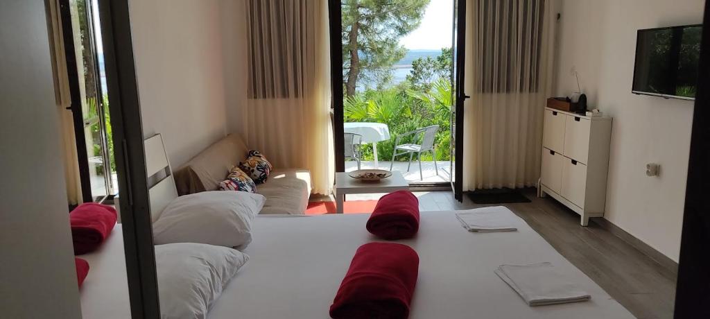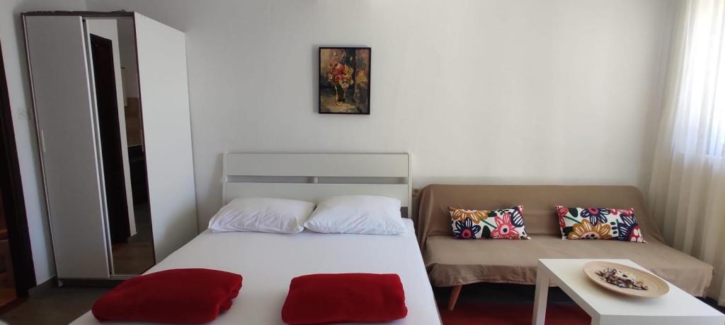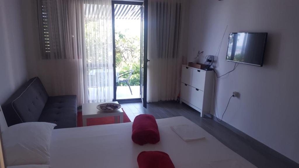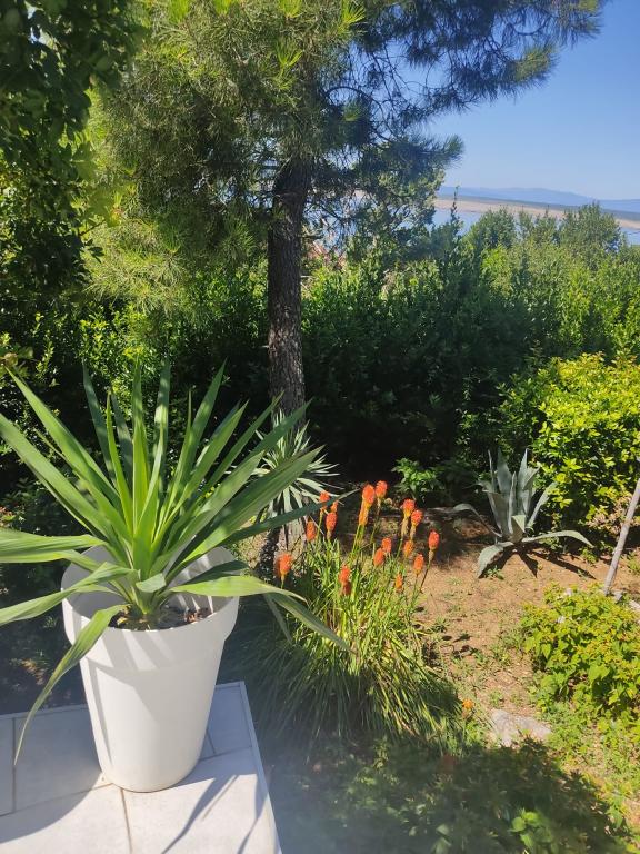 Studio apartman Mira nalazi se u obiteljskoj kući s zasebnim ulazom. Okružen zelenilom i prekrasnim pogledom na more. Neposredna blizina trgovine i ljekarne. Gosti imaju osiguran parking ispred kuće.