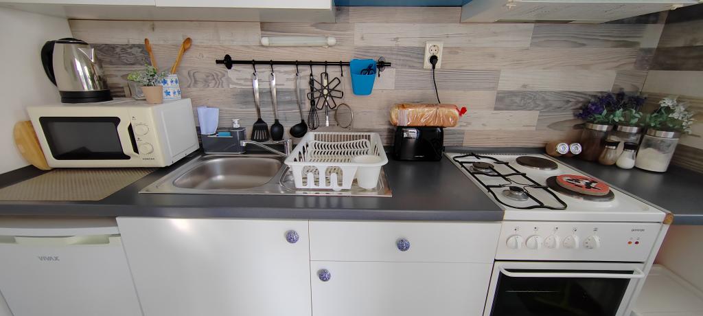 Piće dobrodošlice je uključeno u cijenu, kompletan pribor za osobnu higijenu ( rucnici, šamponi, pasta za zube, toaletni papir, fen) . Kuhinja je kompletno opremljena.