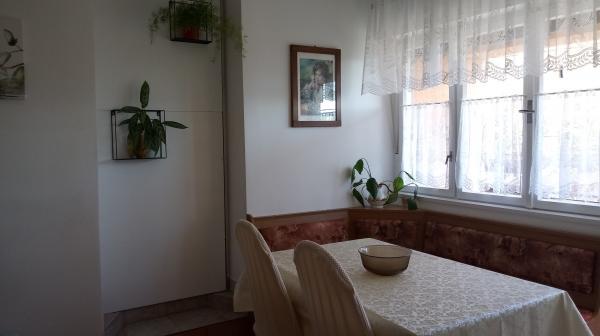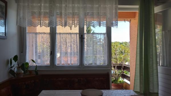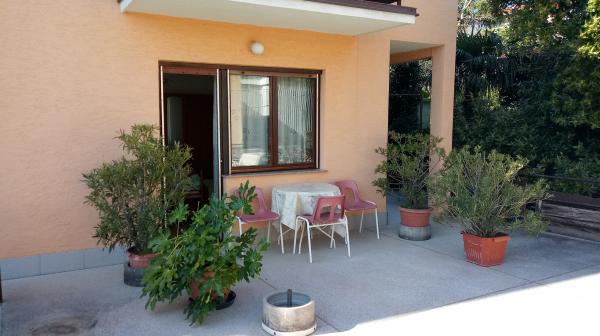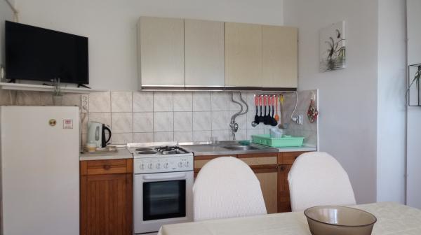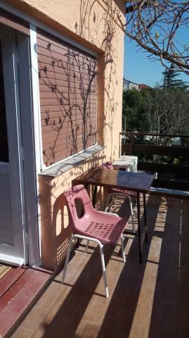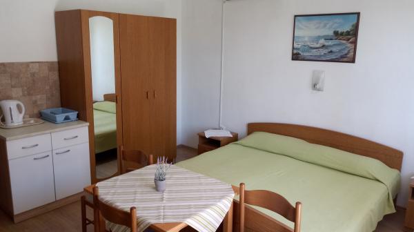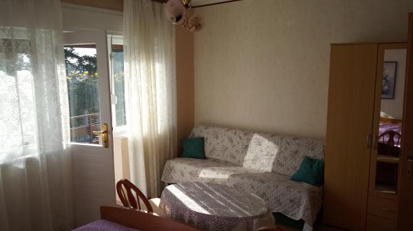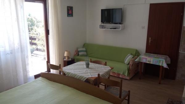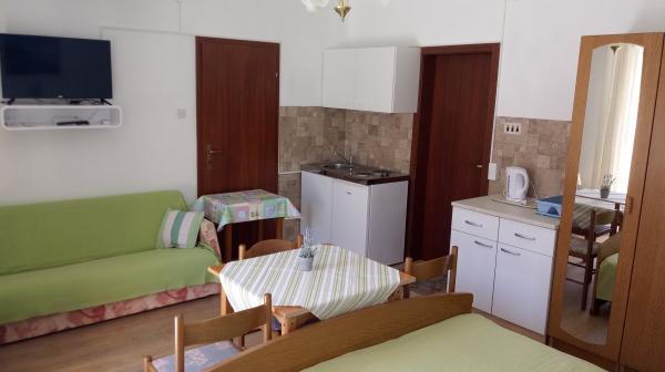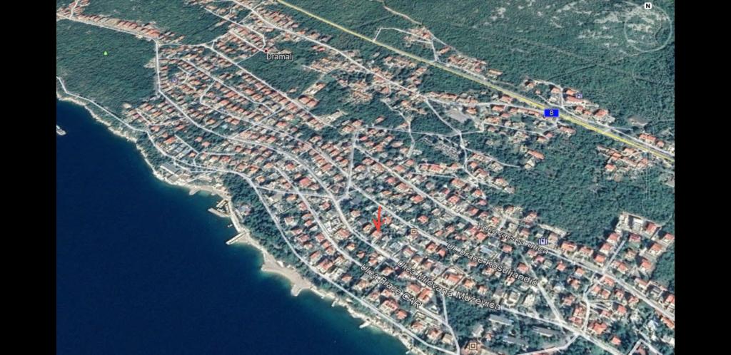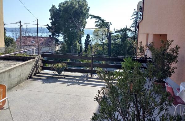 Apartman se nalazi u Dramlju, ulica Milovana Muževiža 116. , s centrom Crikvenice povezan je s City busom, city boat i atraktivnim turističkim vlakićem. Kuća ima više smještajnih jedinica, koji se nalaze na 1. katu obiteljske kuće, a u ostalom dijelu žive vlasnici. Apartmani su udaljeni od mora cca 5 min. hoda do trgovine te isto toliko do plaže. Idealni su za male obitelji. Apartman se sastoji od jedne spavaće sobe s bračnim krevetom i pomoćnim ležajem na razvlačenje, kompletno opremljenom kuhinjom, kupatilom i predsobljem. Ulaz u apartman je sa stražnje strane kuće i ulazi se direktno u kuhinju, odakle se pruža prekrasan pogled na more i otok Krk, a isto tako i s balkona ispred spavaće sobe.