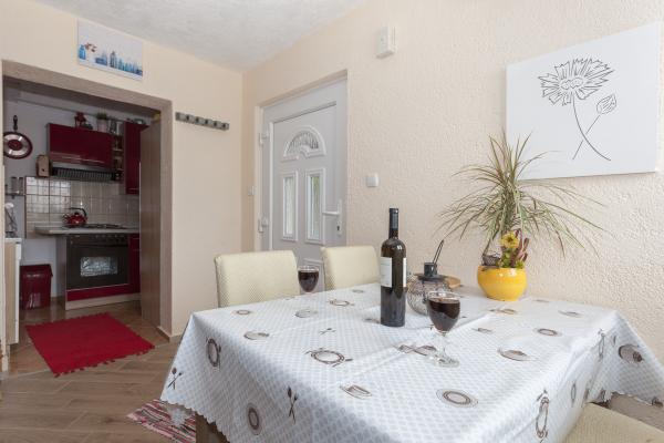 Apartman se nalazi na mirnom mjestu i imate oko 10-15 minuta hoda do mora. U apartmanu imate 2 dobro uređene sobe s bračnim krevetima i ormarićima. Imate i kupaonicu s velikim tušem, sušilom za kosu, zrcalom itd. U kuhinji su bili mnogobrojni pribor, tako da možete kuhati sve što želite. Također smo imali mjesto sa stolom na terasi s pogledom na more. Domaćini Jasnica i njezin suprug bili su vrlo prijateljski i kooperativni. U kući živi vrlo lijep mali pas Maki kao dobro. Stoga smo jako zahvalni Jasnici za dobrim smještajem i dobrim savjetima.
