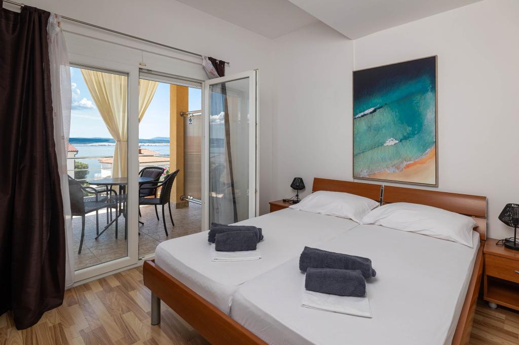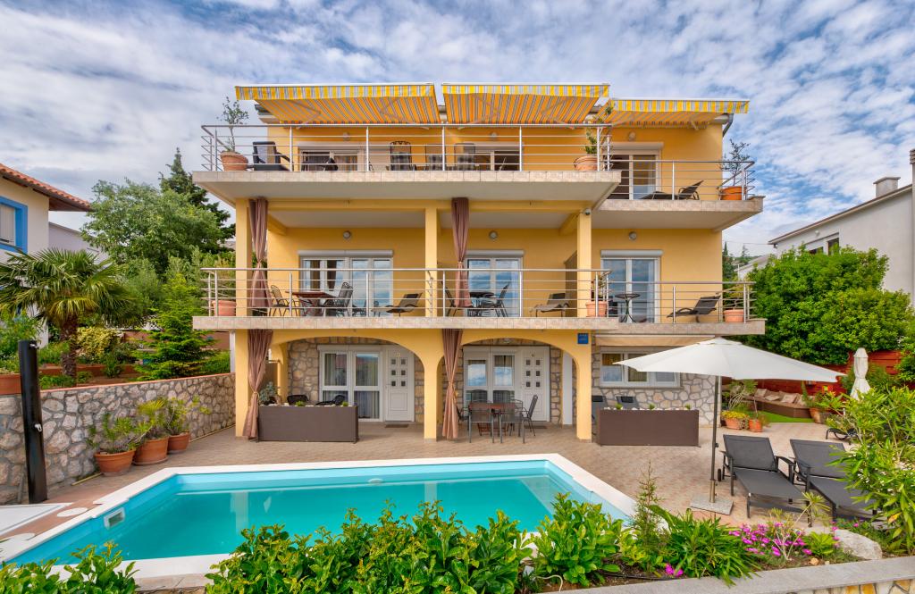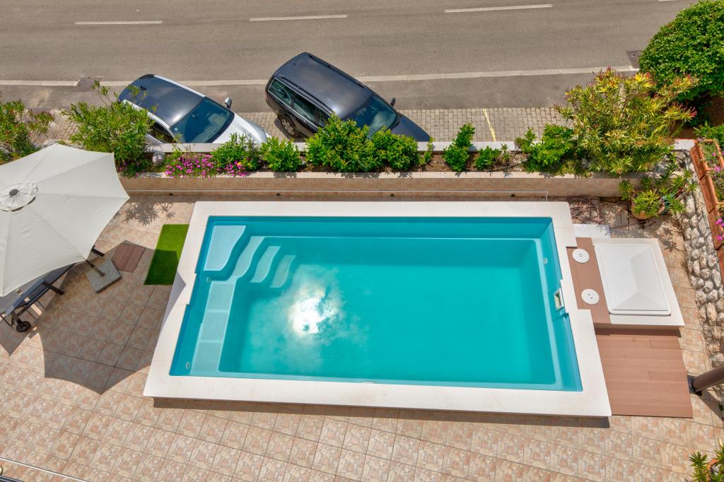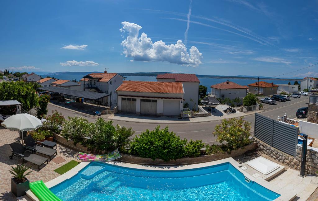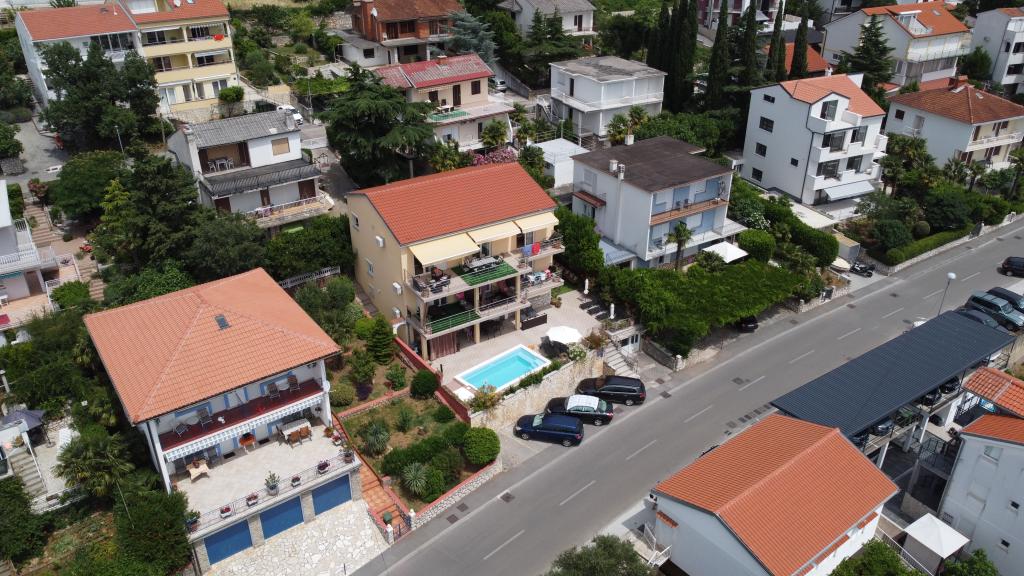Kuća s moderno i kvalitetno opremljenim apartmanima smještena je u drugom redu od mora, u blizini restorana, marketa i pekarnice. Objekt ima prostranu terasu s bazenom, ležaljkama i vanjskim rošitljem. Ispred kuće je parkiralište za goste. U prizemlju se nalaze studio apartman A1 (ID:45200) i apartman A2 (ID:45382) s dvije spavaće sobe, dvije kupaonice i prostranim dnevnim boravkom s kuhinjom. Na 1. katu su apartmani A4 (ID:45381), A5 (ID:45380) i A6 (ID:45235) s pogledom na more, a na zadnjem katu je penthouse apartman A7 (ID:45234) koji pruža izniman komfor.