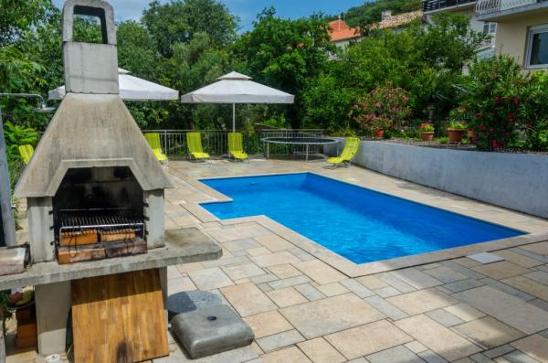 Apartmani smješteni u mirnom predjelu Dramlja, sa izvrsnim pogledom na more, te na čitav Kvarner. Parkirna mjesta neposredno uz objekt. Uz bazen postoji dodatna terasa za sunčanje sa ležaljkama i suncobranima dostupnim na korištenje. U neposrednoj blizini kamin za grill sa natkrivenom terasom za objedovanje.