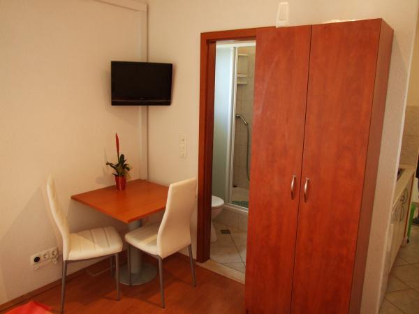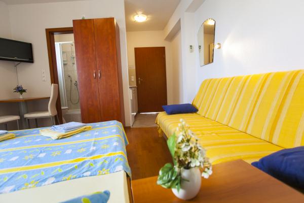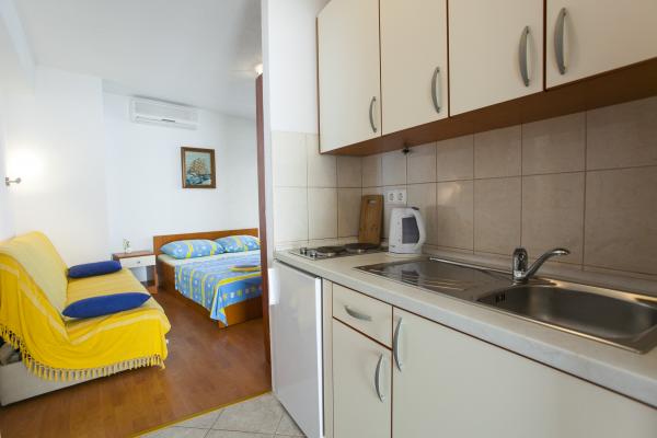 Turistička pristojba je uključena u cijenu.U cijenu je uključeno: taxa, parking, klima uređaj, WiFi, Tv. Minimalni broj nočenja je 7. Studio apartmani su isključivo za 2 osobe.
