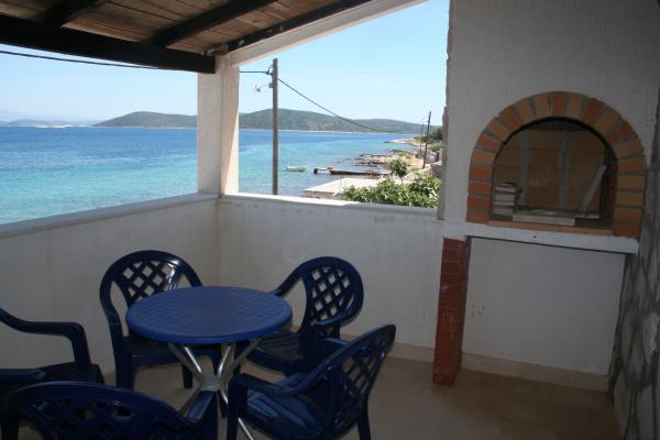 Suvremeno opremljeni apartmani, prvi red do mora na Drveniku Malom, objekt je 5 minuta hoda do centra i pristaništa trajekta, plaža ispred objekta te mnoge prirodne plaže 15 minuta hoda od objekta