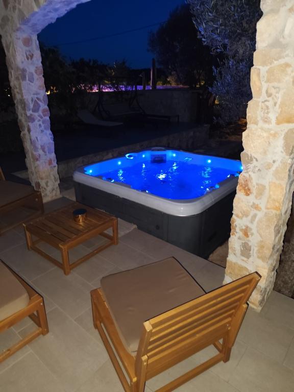 Lijepo, prirodno i mirno mjesto. Iznajmljuje se kuća sa jacuzziem na Drveniku Malom, udaljena od mora cca 150 metara. Kuća se sastoji od dvije spavaće sobe, dnevnog boravka s kuhinjom i blagovaonicom te kupaonicom. Najljepši dio kuće je terasa sa otvorenim kaminom-kameni roštilj. Drvenik Mali okružen čistim vodama Jadranskog mora, otok u blizini grada Trogira i grada Splita. Povezan je manjim trajektom koji u sezoni plovi četiri puta dnevno. Drvenik Mali je vrlo miran otok, toliko mira, jedinstvene prirodne ljepote i iznimno čistog mora. Ovo je savršena destinacija za odmor "daleko od gradske gužve" i pravi je izazov za sve moderne Robinzone. Tražite li bujnu mediteransku vegetaciju, izvorni ugođaj i autentični otočki ugođaj Drvenik Mali je pravi izbor za vas.