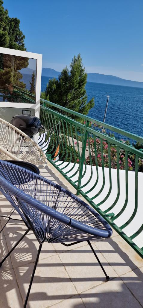 Kompletno opremljen i savremeno renoviran apartman, inventar i namjestaj potpuno nov, sve uredjeno i adaptirano pred ljetnu sezonu 2023. Odmah uz plazu, prvi red do mora. Prelijep pogled na more i na Peljesac, te otoke Hvar i Korculu. Centar 2 minute hoda od apartmana, a trajektna luka 10 minuta hoda. Restorani, pekara i kafici na 2 minute hoda. Uz apartman nalazi se prelijepa setnica koja spaja Drvenik sa Zaostrogom. Novi, veliki supermarket Plodine otvoren na 15 minuta setnje od apartmana (2 min. automobilom).