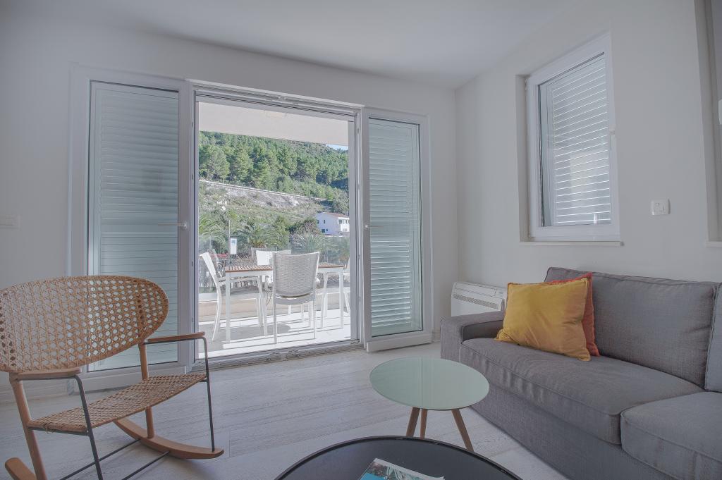 Moderno uređeni apartmani na 70ak metara od mora, u blizini svih bitnijih sadržaja. Nalaze se u drugom redu od mora u mirnoj ulici. Glavna plaža je udaljena minutu hoda, na kojoj se nalaze ugostiteljski objekti i trgovine. Trajekt za Hvar vozi iz Donje vale a pristanište mu je na cca 200 metara od apartmana.