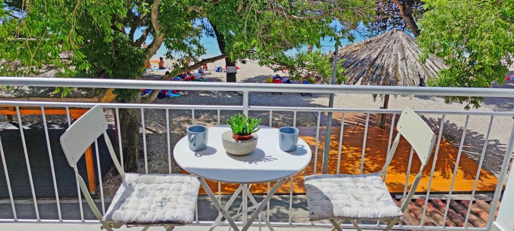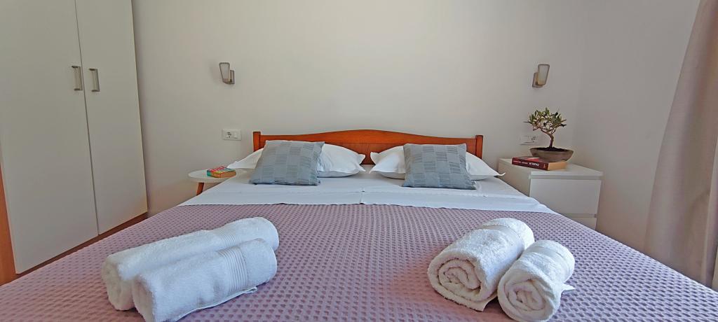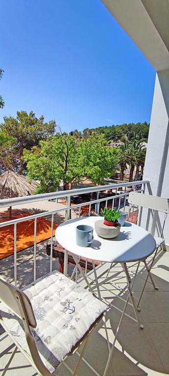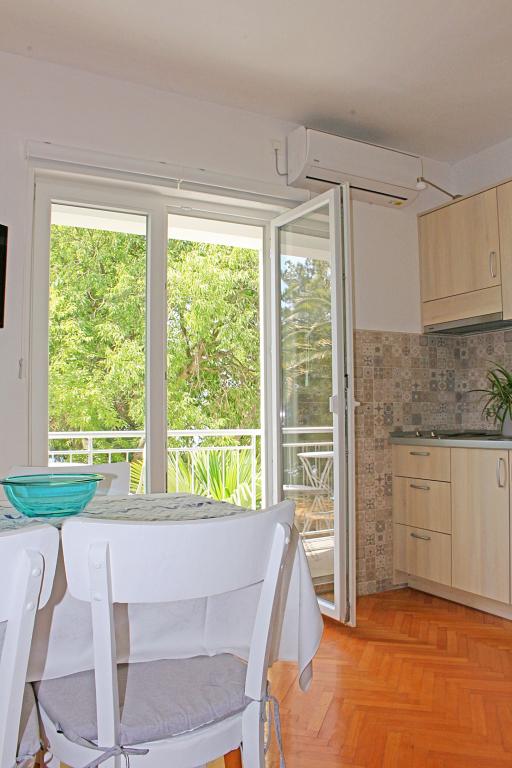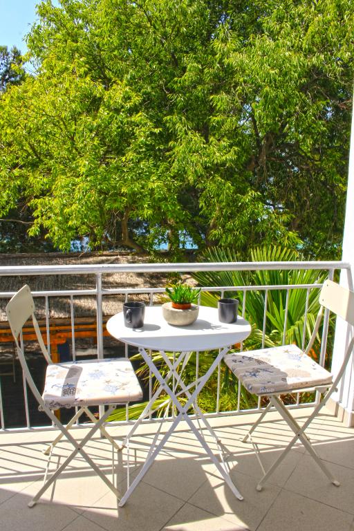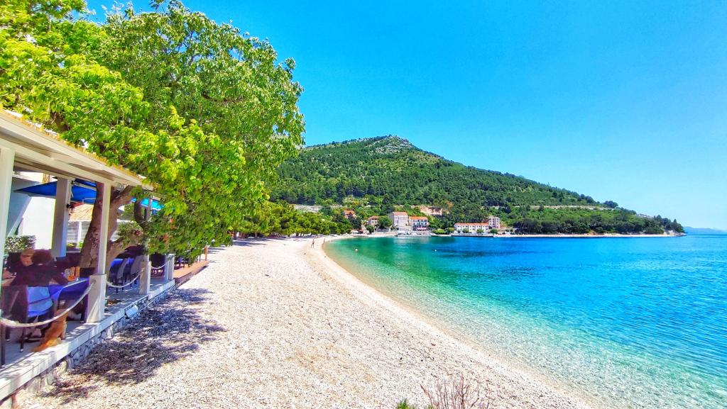 Apartmani su smješteni u obiteljskoja kući koja se nalazi u prvom redu do mora. Plaža je udaljena svega 10 m od kuće. Objekt se nalazi 5 min hoda do centra i 2 min do restorana.
