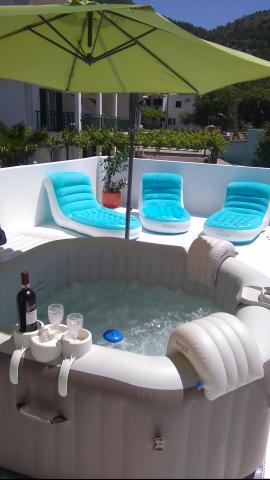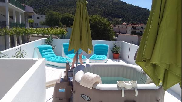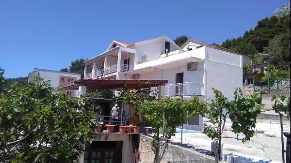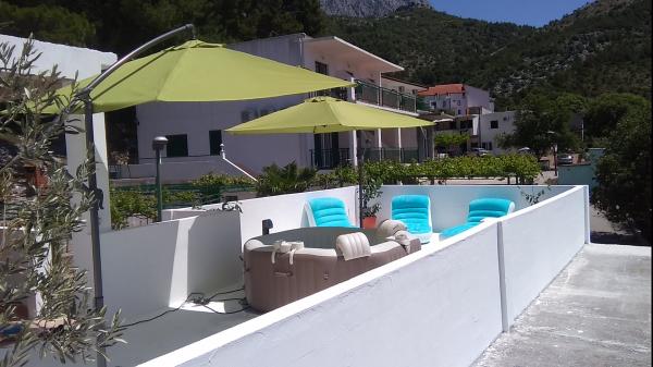 Apartmani su smješteni u mirnom dijelu Drvenika, 3 minute hoda do plaže. Istočni apartman može primiti 5 osoba, ima 45 m2, balkon i terasu od 70 m2 sa masažnim bazenom i ležaljkama. Zapadni apartman može primiti 2 plus 2 osobe, ima 40 m2 i balkon od 10 m2. Naši apartmani nude potpunu privatnost. Smještajne jedinice nalaze se na prvom katu kuće, svaki apartman ima svoje odvojeno stubište. Ispred objekta je dječje igralište i nogometni teren što je pogodno za obitelji s djecom. Parking je osiguran. Studio apartman se može spojiti sa zapadnim apartmanom. Apartmani 5 plus 1, 3 plus 1 i 2 plus 1 se nalaze u Makarskoj, pet minuta hoda od centra grada i petnaest minuta od gradske plaže.