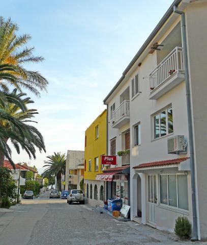 Obiteljska kuća s 3 suvremeno opremljena apartmana ( 2 apartmana na drugom katu kuće s balkonima koji gledaju na more i 1 apartman u prizemlju s posebnim ulazom i parkingom). U sklopu kuće se nalazi trgovina. Preko puta kuće je konoba-restoran. Udaljenost od mora, plaže i centra je 3 minute hoda. Besplatan wi-fi. Svi apartmani su klimatizirani bez dodatne naplate. Parking uključen u cijenu. Dobro nam došli :)
