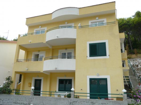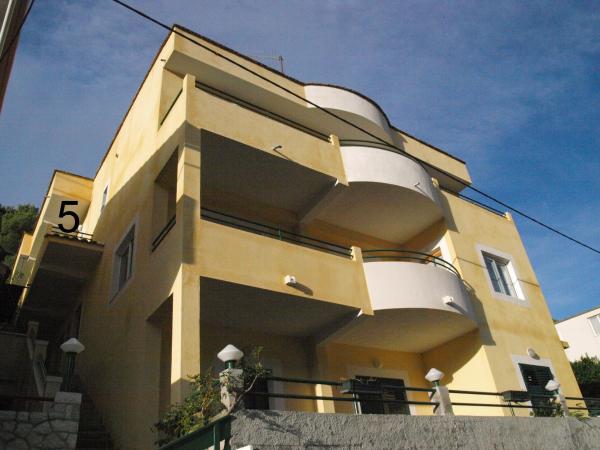 Naši apartmani su udaljeni 100 metara ili samo 2 minute hoda od mora i prekrasne šljunčane plaže. Na samo 10 minuta hoda imate betonsko-stjenovitu plažu gdje možete uživati u intimnijem ambijentu. Na raspalaganju su Vam apartmani 1.A3, 2.Studio 2, 3.Studio 2+1, 4.A2+1, 5.A4+1, 6.A2+1 sa ukupno 15+5 postelja. Ljubazni domaćini učiniti će sve da Vam odmor bude ugodan i opušten.