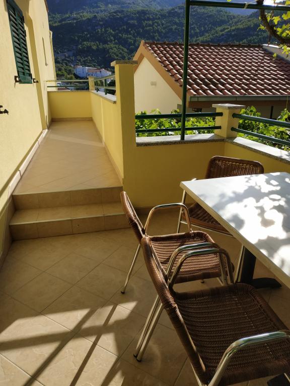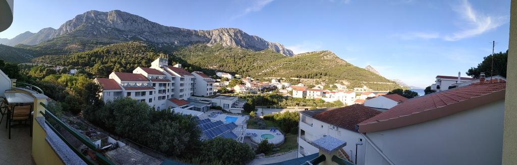 Odlično od dolaska, bacamo torbe u sobu i odlazimo vlasniku po pivo kako bismo riješili detalje boravka Prekrasan pogled na planine i dio mora, soba prekrasna čista i mirisna. Okolica je također odlična, toplo preporučujem vlasnika i ovo mjesto
