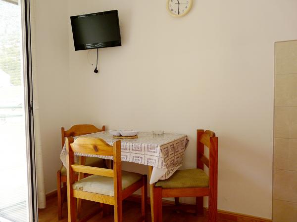 Smještaj s prekrasnim pogledom na planinsku panoramu i središte događanja u Drveniku. Oprema u punom komforu: mala kuhinja, hladnjak i štednjak. Sve što vam treba u kupaonici. Balkon sa garniturom za sjedenje. Što drugo možete poželjeti!