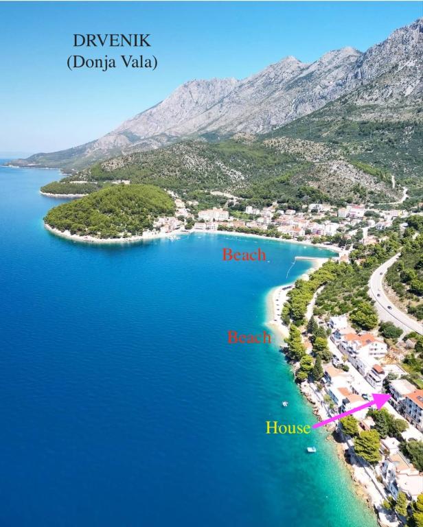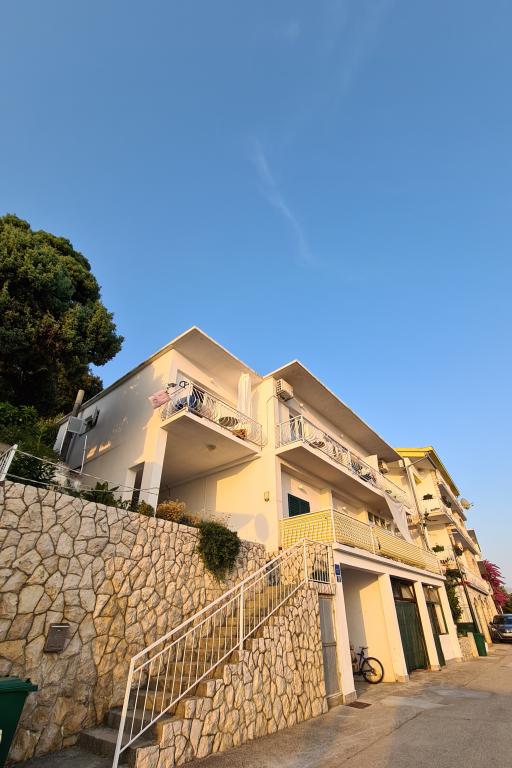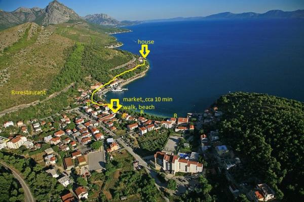 Objekt ima tri sveukupno apartmana. Udaljenost od velike plaže je oko sedam minuta hoda uz more. Kuća je smještena u mirnijem dijelu naselja i ima predivan ogled na more.