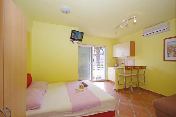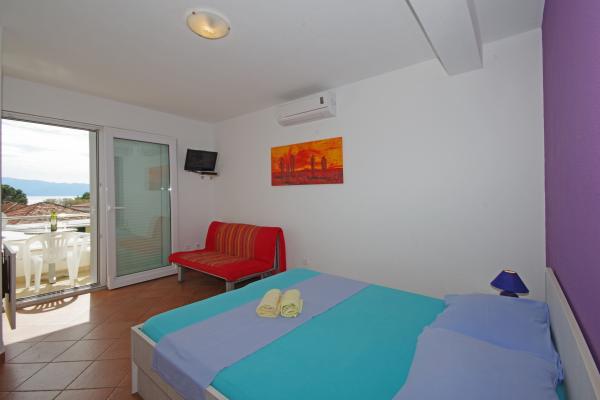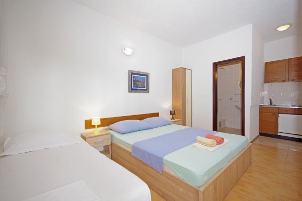 Naši apartmani su udaljeni svega 50m od prekrasne šljunčane plaže i svi su suvremeno opremljeni(klima,satelitska tv i besplatni wi-fi).Na raspolaganju su vam 4 apartmana 2+2,dva studija 2+1 i jedan veliki apartman 4+4.U ponudi imamo još i dva apartmana u središtu Makarske(udaljeni 100m od glavnog trga):studio 2+2 i apartman A4.