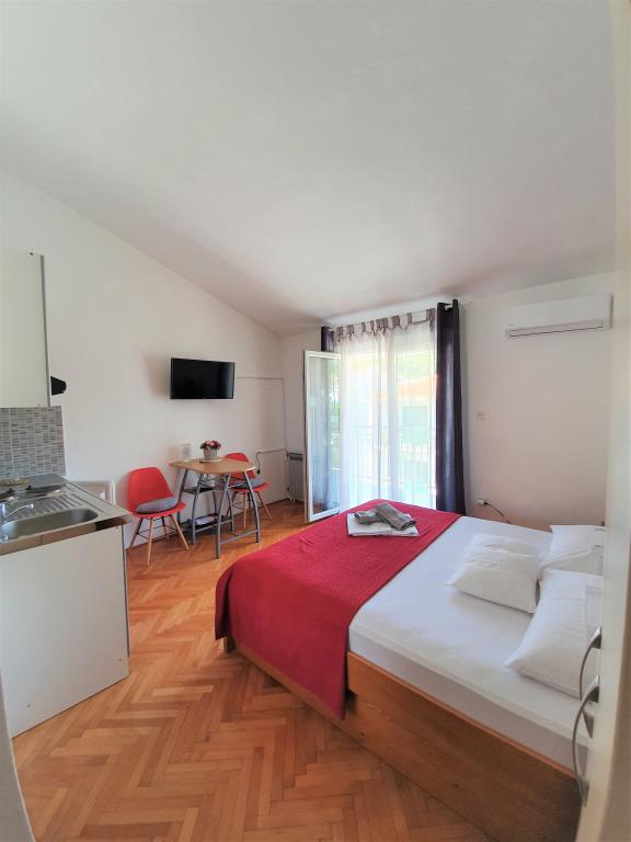Dobrodošli u Drvenik! Apartmani Villa Ivan se nalaze u mirnom dijelu centra mjesta, koji su od plaže i šetnice udaljeni 20m. Objekt nudi lijepe, čiste i opremljene apartmane i studija, koji se nalaze na 1. i 2. katu i svaki apartman ima svoje balkone. Svi apartmani sadrže kuhinju opremljenu sa posuđem i kuhalom za vodu, vlastitom kupaonicom, TV-om, klima uređajem, WiFi-om i osiguranim parking mjestom. Na raspolaganju su ručnici i posteljina. Psi su dobrodošli (Drvenik ima plažu za pse). Dostupno gostima: dvorište opremljeno s roštiljem, krevetić za bebe. Također ako vam treba nešto drugo, pokušati ćemo vam pomoći. U blizini se nalazi trgovina, pošta, turistički ured, mjenjačnica, restorani. Ako se želite osjećati kao kod kuće i uživati u mirnom okruženju, gostoprimstvu ljudi, dugim prekrasnim šljunčanim plažama, kristalno čistom moru, borovoj šumi, šetnicama uz more/planinu Biokovo, sportsko rekreacijskom sadržaju, biciklističkim stazama i vidikovcima onda smo najbolji izbor za vas.