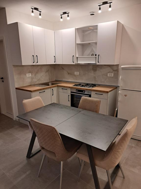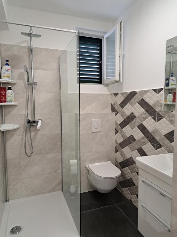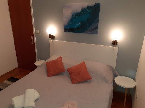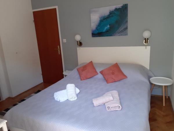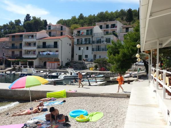 Apartmani se nalaze samo 10 metara udaljeni od mora s prekasnim pogledom na more, plažu i cijelo mjesto. Svi apartmani su opremljeni televizorom Apartmani se sastoje od dvije spavaće sobe, dvije kupaonice i velikog prostora sa kuhinjom, trpezarijom i dnevnom sobom