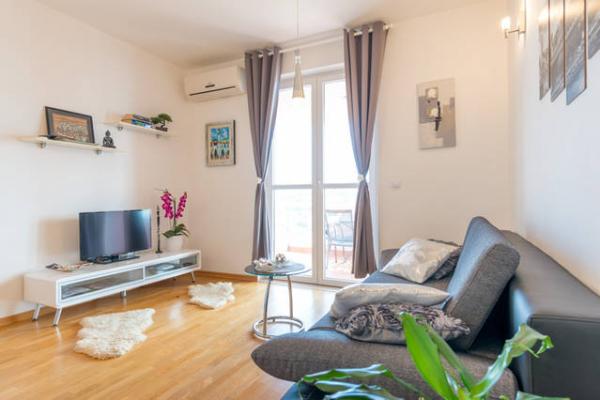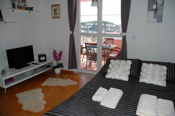 Apartman se nalazi u blizini luke Gruž i putničkog terminala i udaljen je 100m od autobusne stanice. Ima privatni parking. Moderno uređen apartman u stambenoj zgradi, smješten u mirnom dijelu naselja Gruž, 4 km udaljen od starog dijela Dubrovnika. Sa balkona se pruža prekrasan pogled na zaljev Gruž. Apartman je površine 45 m2, klimatiziran, ima 2. flat televizije, satTV i besplatni bežični internet. Sastoji se od dnevnog boravka sa blagavaonom, potpuno opremljenom kuhinjom (štednjak, pećnica, perilica suđa, frižider, zamrzivač, posuđe, začini, kuhalo za vodu, toster) i banjom sa tušem (ima i perilicu rublja i sušilo za kosu) i sobe (ima glačalo i plohu a glačanje). Sofa Dobrodošli u prelijepi Dubrovnik!