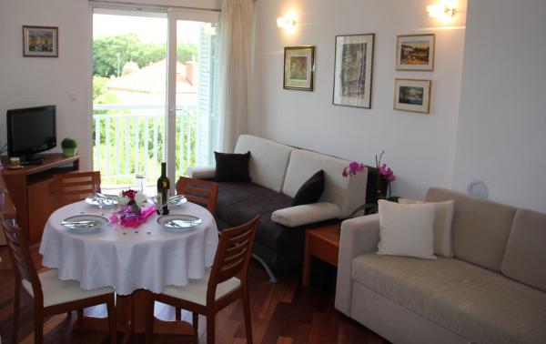 Kompletno i moderno opremljen novi apartman u blizini centra Dubrovnika (Stari grad). Deset minuta laganog hoda do stare gradske jezgre, a obližnje plaže udaljne su oko pet minuta. Apartman ima na raspolaganju dva parkirna mjesta unutar garaže koja se nalazi u istom objektu.
