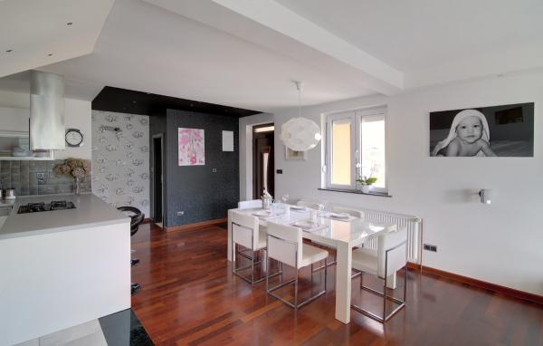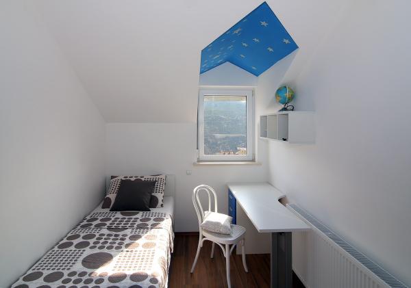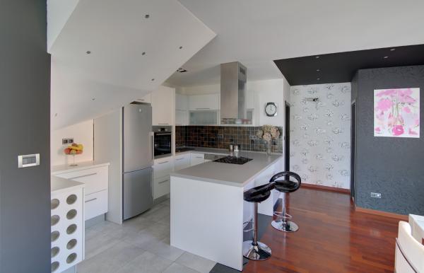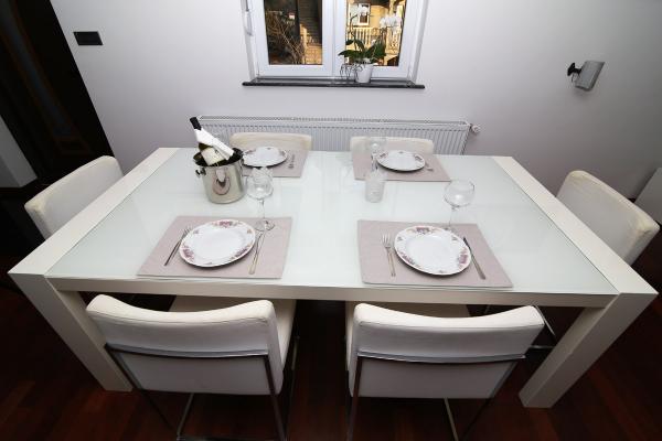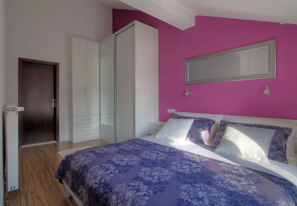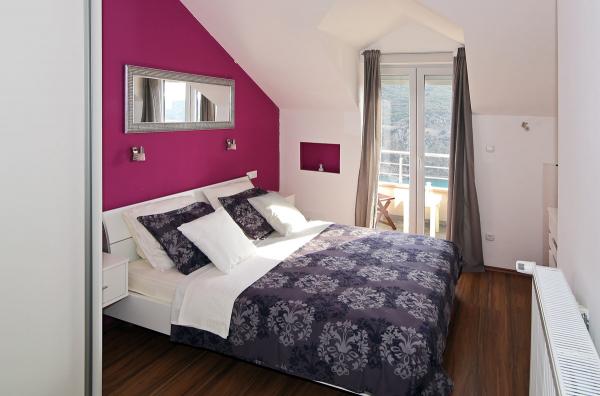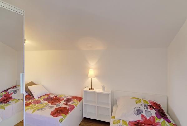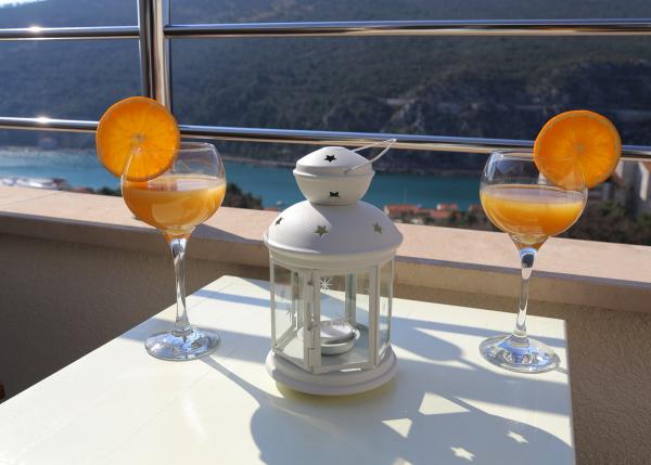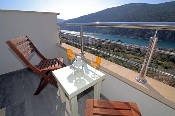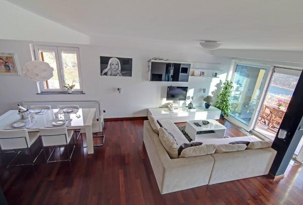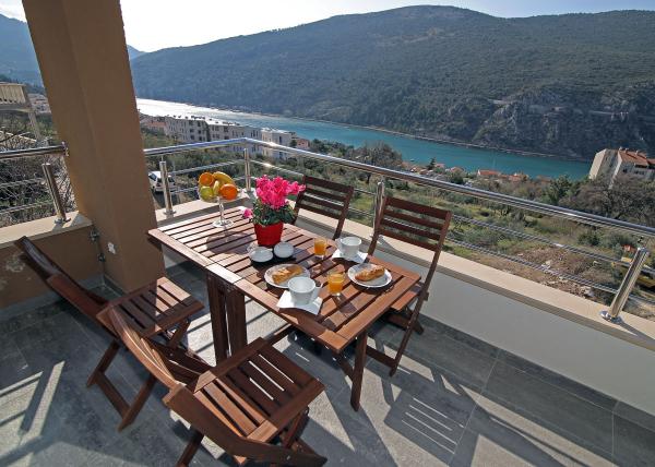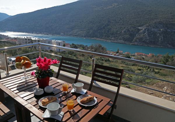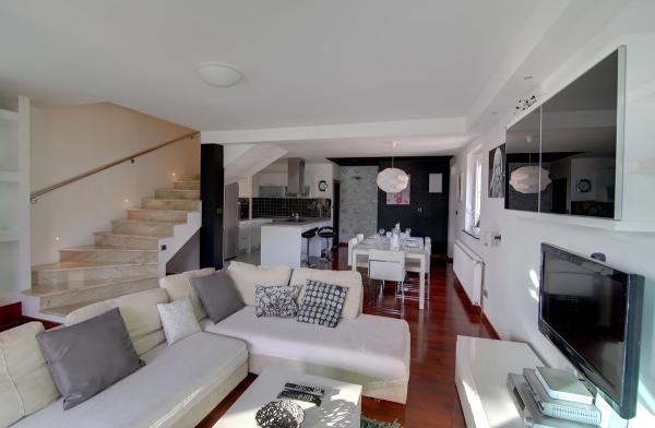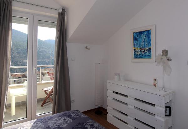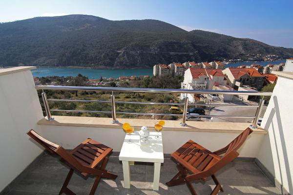 Moderno uređen dvoetažni luksuzni apartman u kući, površine 130 m2 nalazi se u naselju Nova Mokošica, svega 12 km udaljen od starog dijela Dubrovnika. Smješten u mirnom dijelu naselja u blizini maslinika, drveća i zelenila, dok se sa tarace i balkon pruža prekrasan pogled na rijeku Omblu, ACI Marinu i brdo Srđ. Na gornjoj etaži smještene su dvije dvokrevetne sobe (twin room), jedna kupaonica sa tuš kadom i jedna spavaća soba sa kupaonicom (en suite room) opremljena sa hidromasažnom kadom za dvije osobe i sušilom za kosu te vlastitim balkonom. Na donjoj etaži smješten je zaseban zahod, te moderna potpuno opremljena kuhinja (štednjak, pećnica, perilica suđa, perilica rublja, frižider, mikrovalna, posuđe,kuhalo za vodu, toster), blagovaona sa prostranim dnevnim boravkom sa LCD televizorom, unutarnjim kamionom i terasom. Apartman je klimatiziran, sa besplatnim bežičnim Internetom (WI-FI), privatnim parkingom i vanjskim roštiljem. Najbliža plaža udaljena je 5 km, trgovina prehrambenim proizvodima 150 m, a u krugu od 300 m nalaze se caffe barovi, fast food, bistro.
