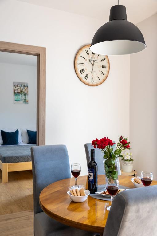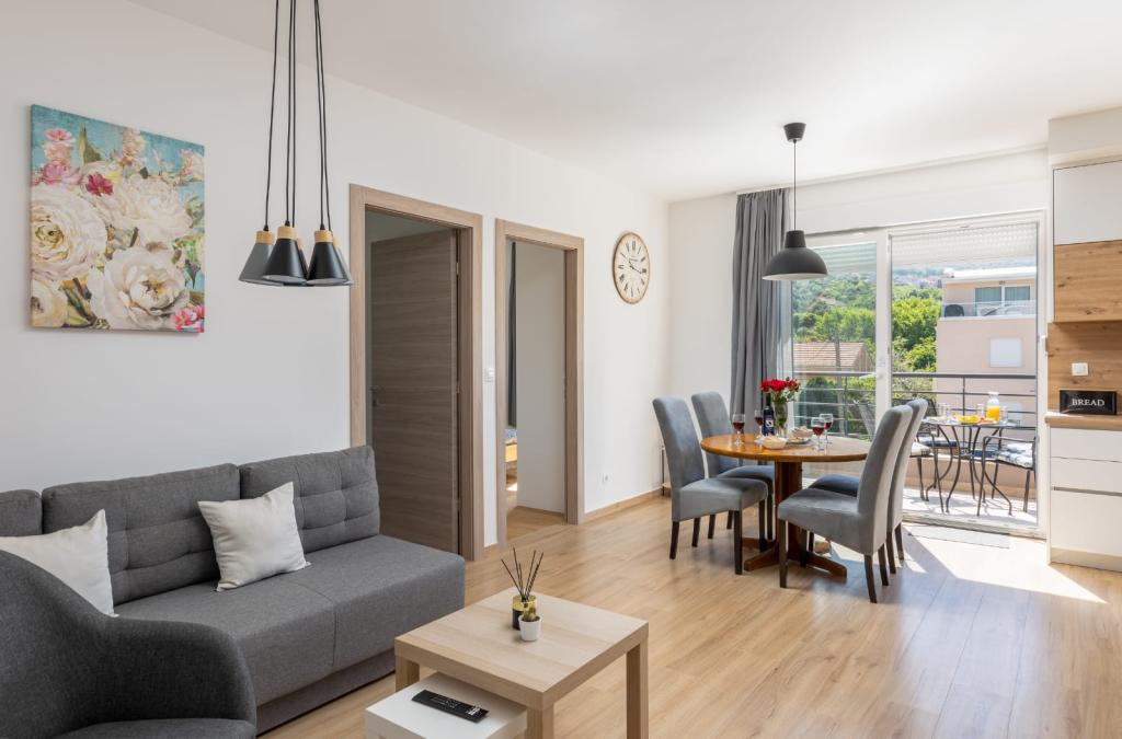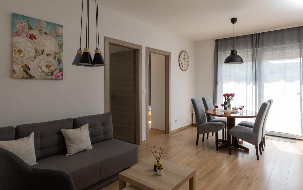 Pročitaj više Smještajne jediniceZa rezervaciju je potrebno uplatiti akontaciju od 30%na naš račun , a ostatak po dolasku u naš apartman. Boravišna pristojba je uključena u cijenu. Izlazak iz apartmana je do 10 sati ujutro , a ulazak u apartman je od 15 sati popodne.