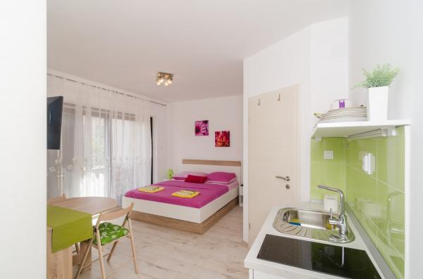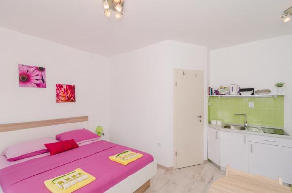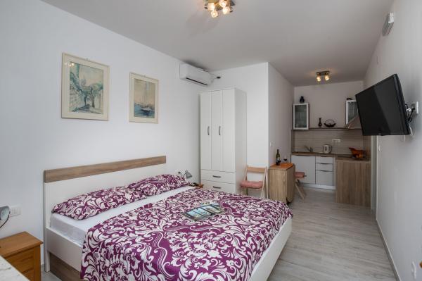 Kompleks od 9 studio apartmana za dvije osobe i jednog studio apartmana za 3 osobe u mirnom i prekrasnom dijelu Dubrovnika, na području Babin Kuk/Lapad. Objekt se nalazi 10-15 minuta autobusom od Straduna te svega 5 minuta pješice od centra Lapada. Nekoliko lijepih plaža udaljeno je svega 5 minuta hoda od apartmana. Svi apartmani kompletno su i novo uređeni, svaki sa zasebnim privatnim ulazom, kuhinjom, kupatilom, internetom i tv-om. Gostima je na raspolaganju velika terasa i grill, a privatni parking je besplatan i dostupan ovisno o kapacitetu (rezervacija je potrebna).