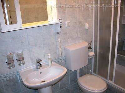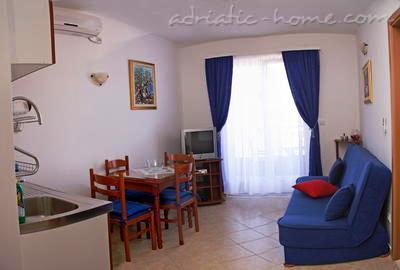 Pročitaj više Smještajne jediniceAPARTMAN A1: se sastoji od 1 spavaće sobe za 2 osobe (krevet može biti bračni ili odvojeni), kuhinja/dnevni boravak sa sofom za 2 osobe, banja(tuš), TV/SAT, klima, balkon, parking mjesto. APARTMAN A2: se sastoji od spavače sobe za 2 osobe (krevet može biti bračni ili odvojeni), kuhinja/dnevni boravak,banja (tuš), TV/SAT, klima, parking. APARTMAN A3: je soba za 2 osobe (krevet može biti bračni ili odvojeni) sa banjom(tuš), TV/SAT, klima, frižider, parking mjesto. APARTMAN A4: je za 4 osobe. Sastoji se od 2 spavače sobe (bračna i dječija), kuhinja/dnevni boravak sa sofom za 1 ili dvije osobe, banja(tuš), TV/SAT, klima, terasa i parkirno mjesto.