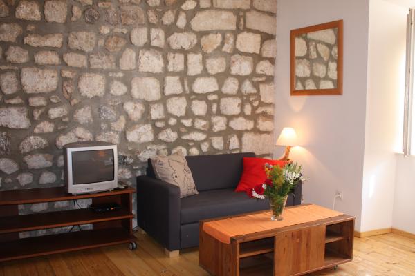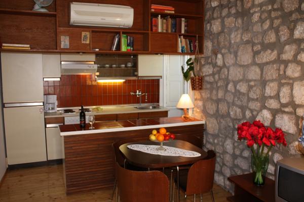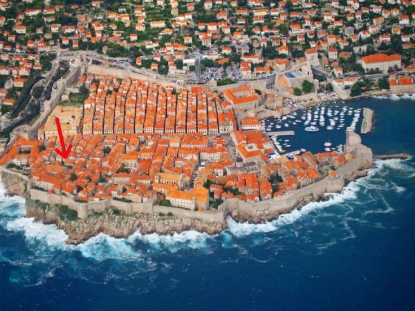 Apartman je smješten u mirnoj i širokoj ulici koja je paralelna s glavnom ulicom grada - Stradunom. U neposrednoj blizini su kavane, restorani, muzeji, galerije i sve glavne atrakcije grada. Stoga je to idealna lokacija za razgledavanje svega, kao i za noćni život. Jedna je plaža udaljena 4 min, a druga 15 min hoda. Tržnica i ulaz na zidine su na 2 minute hoda. Apartman je na II. katu kamene i vrlo uredne zgrade. Adaptiran je 2012. godine, a kuhinja i kupaona su još dodatno renovirane u proljeće 2014. g.