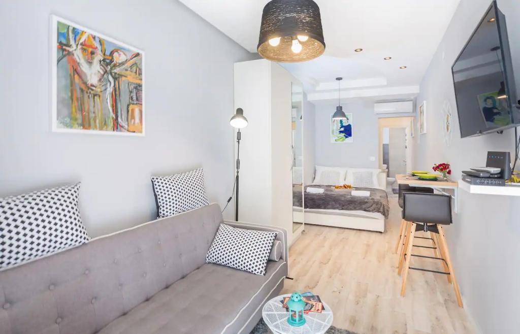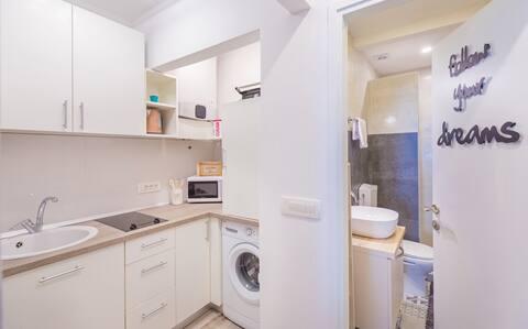 Potpuno opremljen i moderno uređen apartman na odličnoj lokaciji. Samo nekoliko minuta hoda do mnogih restorana i plaža.