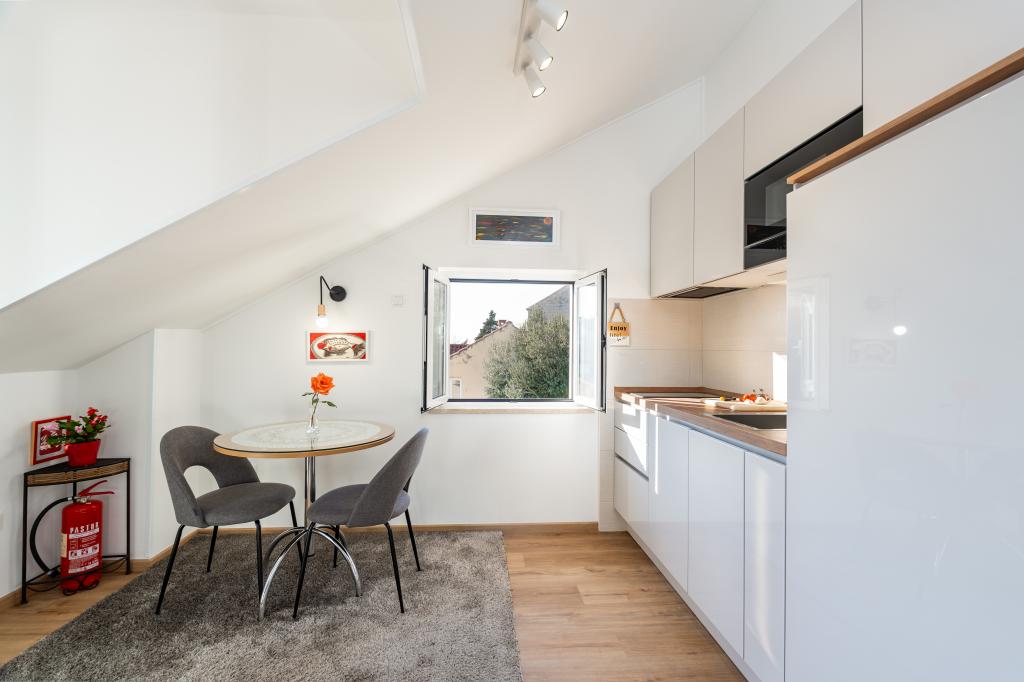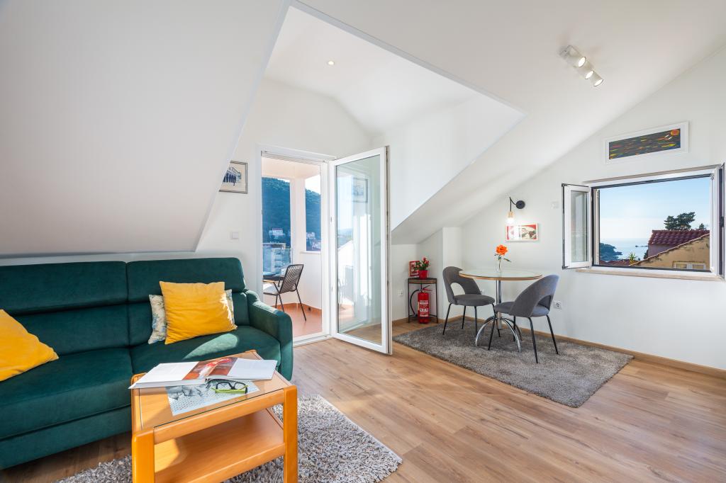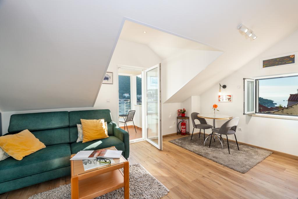 Suvremeno i ugodno opremljeni apartmani svaki za po 2 osobe na poluotoku Lapad u Dubrovniku. Smješteni su u mirnom dijelu s obiteljskim kućama udaljeni tek nekoliko minuta pješice kroz šetnicu do plaže. Blizina restorana, kafe barova, tržice, supermarketa i javnog prijevoza svakih deset minuta do povijesne gradske jezgre. U objektu se nalaze dva apartmana svaki za po dvije osobe s po jednom spavaćom sobom, dnevnim boravkom, kuhinjom, kuaponicom i balkonom s pogledom na more.