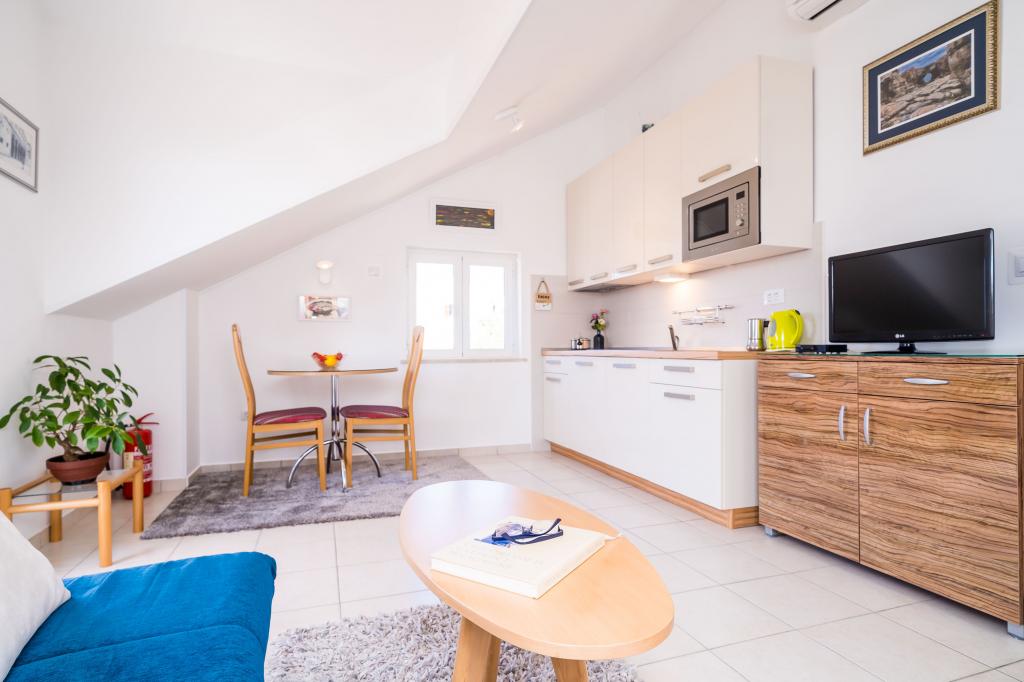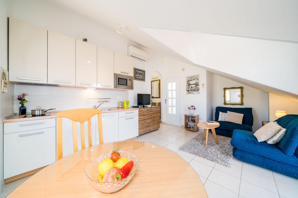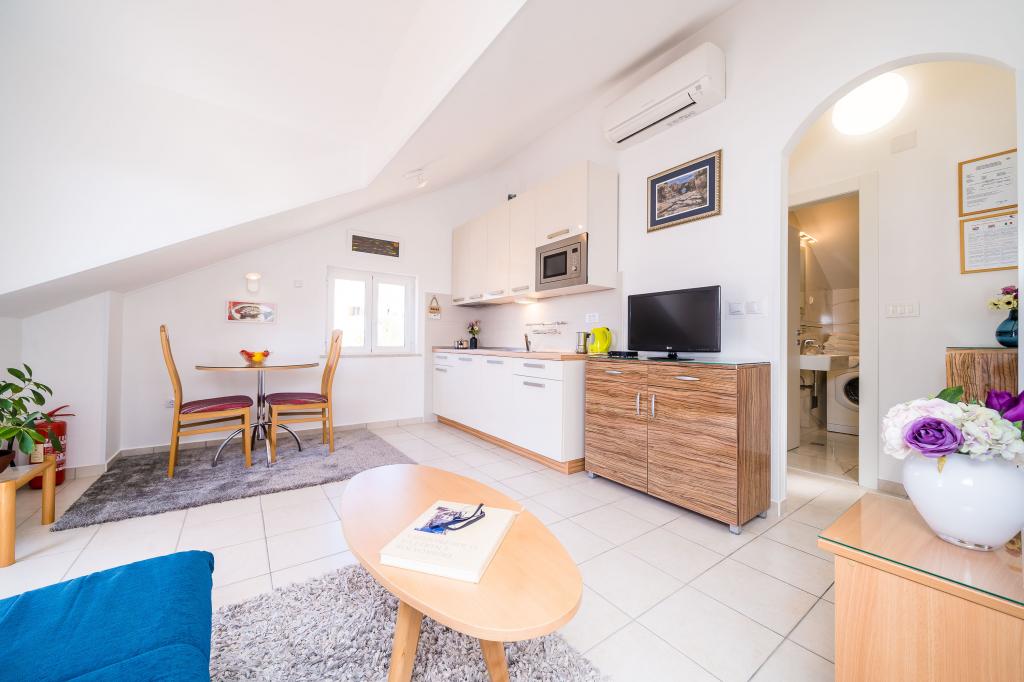 Prije svega da se još jednom zahvalim Marijani na gostoprimstvu i ljubaznošću, Apartman nudi sve što je potrebno da se extra osjećaš na odmoru. Od Klime u Dnevnom i u Spavaćoj, Mašina za pranje veša, Aparat za kavu , ponuda na TV raznovrsna u različitim jezicima. Ovaj Apartman s pravom spada u Luxus Apartmane. Pogled s Balkona se proteže od Lapada do Mora. Od Apartmana do Plaže nam je bilo potrebno 5-6 minuta, lagane šetnje. Mi smo Auto ostavili na Parking mjesto od Apartmana i nismo ga više koristili za vrijeme našeg boravka. Prodavaonice, restorani, Autobusna Stanica se nalaze par minuta od Apartmana. Jedino što bi možda nekome moglo smetati tko ima problema s koljenima su Stepenice koje vode prema Promenadi i Plazi, nama lično nisu smetale. Gledali smo na to kao neki mali trening . Lapad nam se veoma dopao a još više Apartman.