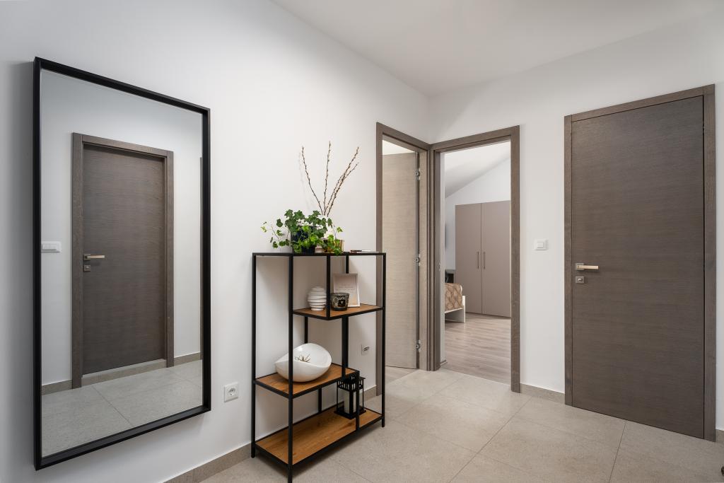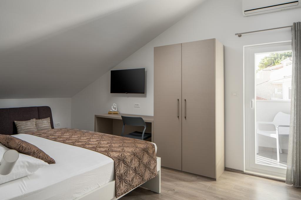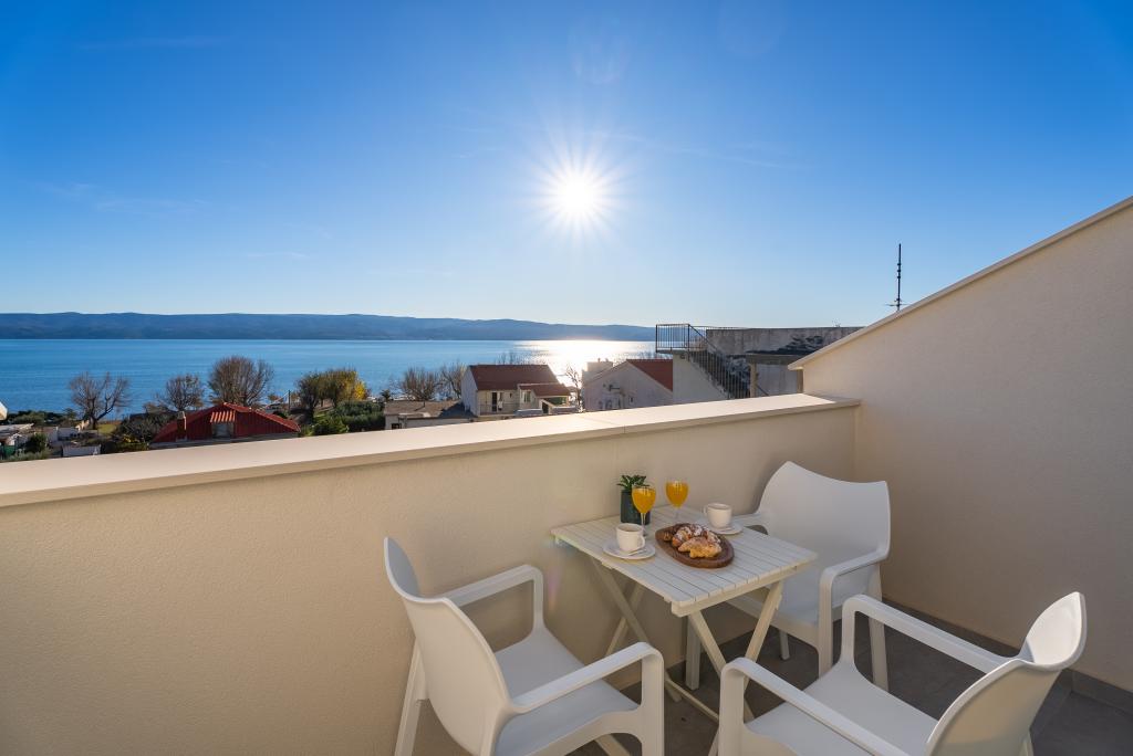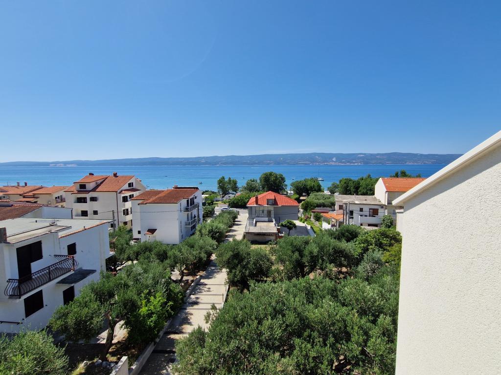 Apartman se nalazi u središtu turističkog mjesta Duće i udaljen samo 150 metara od predivne pješčane plaže i mora. Zauzima kompletni 2.kat obiteljske kuće i jedini je apartman u kući. Ima predivan pogled na more i otok Brač. Apartman je kompletno je renoviran u 2023.godini i kao takav pruža bezbrižan i miran odmor. Gostima su na raspolaganju tri klimatizirane spavaonice sa TV-om i balkonom, klimatizirana blagovaonica sa kompletno opremljenom kuhinjom, kupaonica i još jedan zaseban wc. Također na raspolaganju je vanjski stol i roštilj u sklopu okućnice objekta. Objekt ima besplatan privatan parking. Također, ima mirno okruženje i privatnost. Objekt okružuju stabla maslina što daje osjećaj spokoja i stvara lijepu atmosferu. Domaćin je na raspolaganju gostu. Dolazak gostiju moguć je bilo kojim danom u tjednu. Blizina većih mjesta i gradskih središta - Dugi Rat 1.5 km, Omiš 2,5 km, Split 20 km.