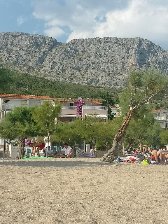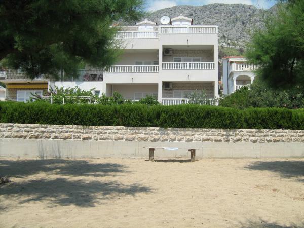 Kuća se nalazi na samoj pješćanoj plaži. Mirno i ugodno mjesto sa spektakularnim pogledom na more i otoke. Blizu grada Omiša (1500m) ,koji leži podno planina na ušću rijeke Cetine,Šarmantan gradić koji osim povijesnih znamenitosti pruža neobičan spoj planina, rijeke i mora. Za aktivan sportski odmor ili mirni obiteljski ovo je idealno odredište za vas!
