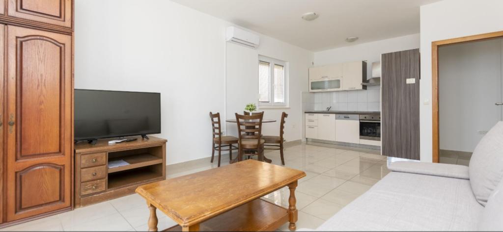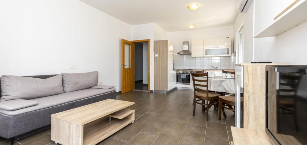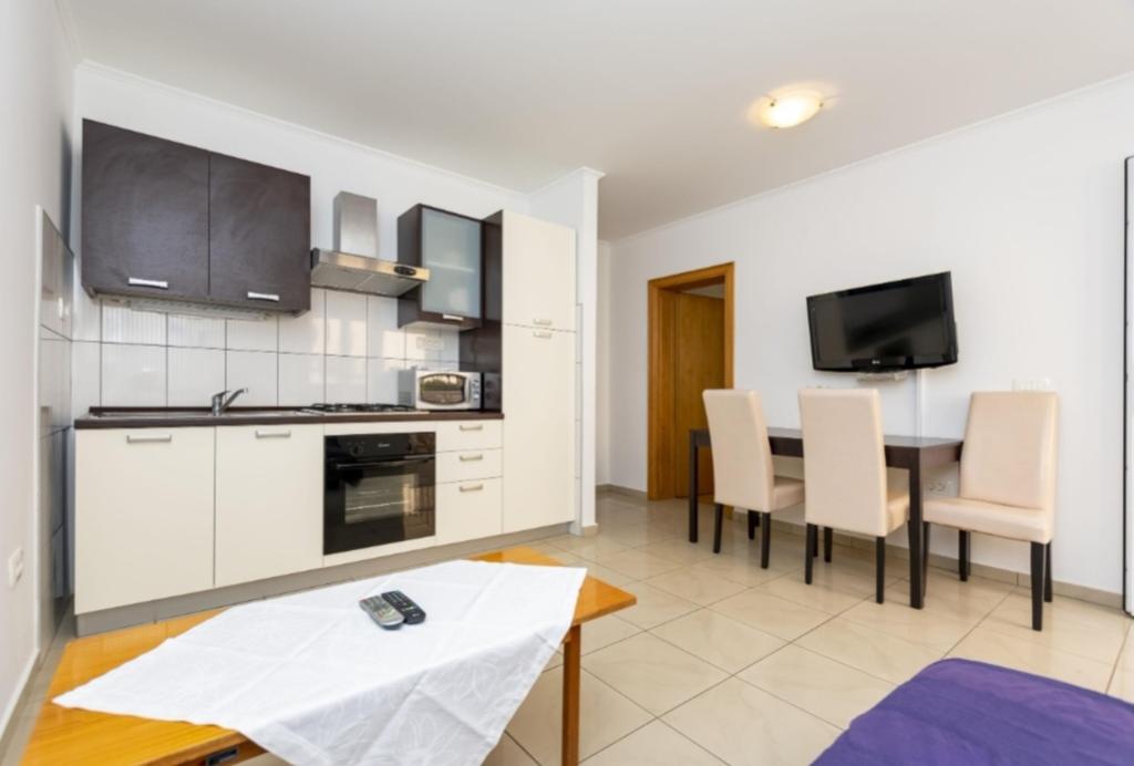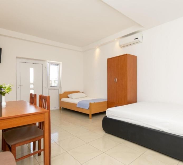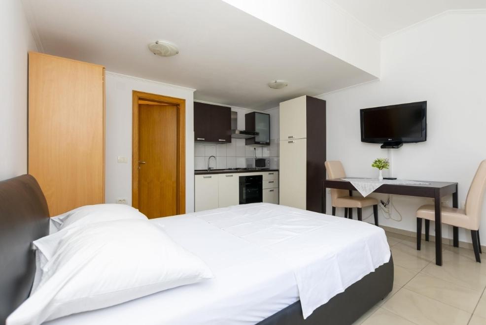 U našoj ponudi su šest novo uređenih apartmana različitih veličina. Svaki apartman je opremljeni s kompletnom kuhinjom i svim potrebnim aparatima i priborom, s televizorom sa satelitskim programima, te s klima uređajem. Apartmani imaju terasu s koje se pruža pogled na more. U blizini naših apartman se nalazi lijepa pješčana plaža s popratnim sadržajima kao što su : kafići, restorani.... Do plaže imate 5 minuta hoda . Za vaša vozila osiguran je parking.