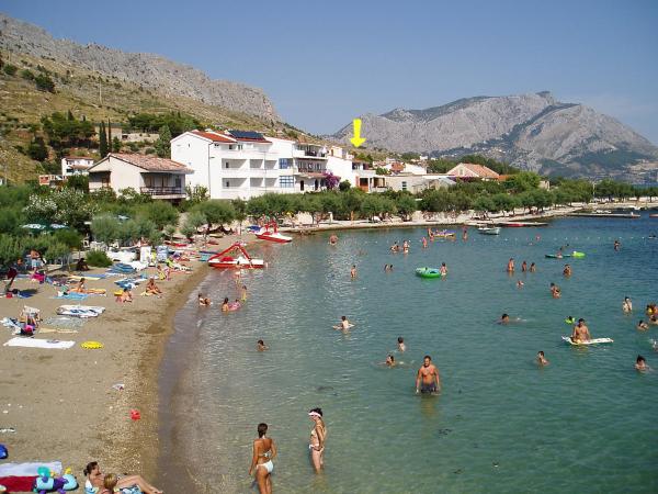 Turistička pristojba je uključena u cijenu.-mikrovalna pećnica, dječji krevetić, garaža na zahtjev. U bližoj i u široj okolici nude se različiti sadržaji i mogućnosti razgledavanja i provođenja slobodnog vremena. Stoga i onim zahtjevnijima koji ne traže samo boravak na suncu i kristalno čisto more, također neće biti dosadno. Znamenitosti u okruženju: Omiš (4 km), Dioklecijanova palača- Unesco (20 km), ostaci stare Salone (20 km), Trogir – Unesco (45 km) Slobodno vrijeme: Sportovi na vodi: skijanje na vodi, skijanje na banani, vožnja skuterom, pedaline, rent-a-boats Avanturistički program: rafting na obližnjoj rijeci Cetini, kanuing, canoe safari, ronjenje, free climbing, paintball… Jednodnevni izleti brodom na obližnje otoke (fish-picnics)