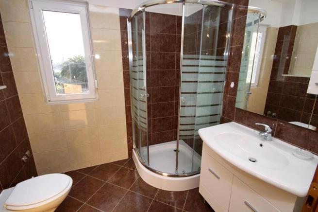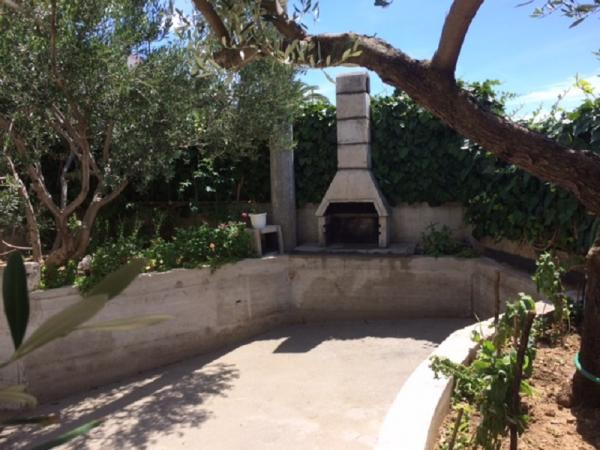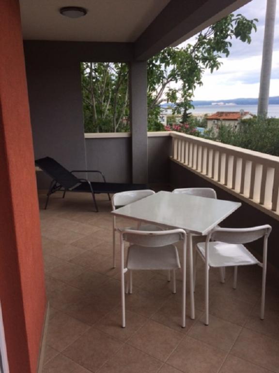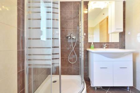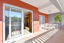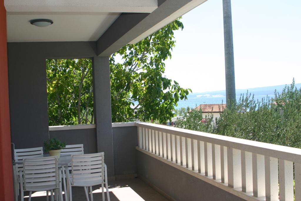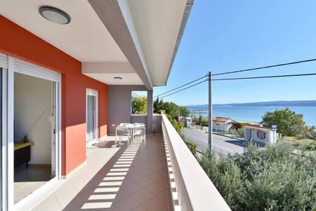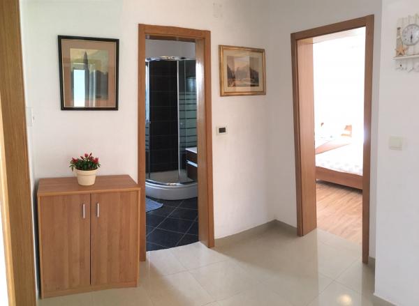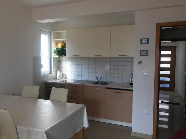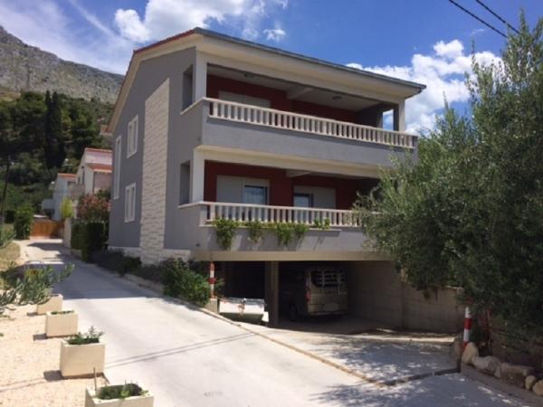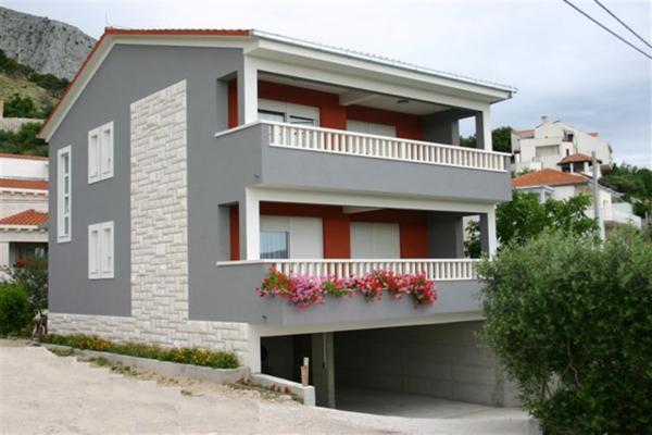 Kuća ima dva apartmana od 80 metara kvadratnih. Svaki apartman ima dvije spavaće sobe, u jednoj sobi su dva ležaja, a u drugoj tri ležaja. U prostranoj kuhinji s dnevnim boravkom postoji mogućnost smještaja za dvije osobe na kauču. Kuhinja je kompletno opremljena, hladnjak, pećnica, perilica posuđa. U kupatilu se nalazi mašina za pranje rublja. U hodniku se nalazi kupatilo s toaletom i toalet. Oba apartmana imaju prostrani balkon s pogledom na more. U prizemlju su garaže za auto. Potrebno je preći cestu kako bi došli do plaže koja je udaljena 100 metara od objekta. Na maloj udaljenosti postoji mogućnost izbora među više vrsta plaži i dubina mora. Pogodno za djecu. Na plaži, osim kupanja i sunčanja možete izabrati među raznim dodatnim oblicima zabave. Udaljenost kioska sa kruhom je 50 metara, trgovine 200 metara, a u bližoj okolici ima više vrste restorana.