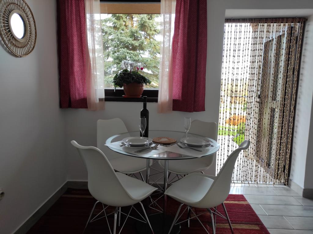 Apartman se nalazi u obiteljskoj kući, u prizemlju s odvojenim ulazom. Okružen je zelenilom i 100-ak metara udaljen od rijeke Mrežnice. Dolazite li osobnim vozilom, parkirno mjesto osigurano je u dvorištu. Unutrašnji prostor veličine je 35 m2, a vanjska terasa 15 m2. Idealno za parove i manje obitelji (maksimalno 3 osobe). Povesti možete i jednog ljubimca uz nadoplatu od 10 €. Apartman je kompletno namješten, renoviran (2023.) i klimatiziran (hlađenje/grijanje). Zbog pozicije u prizemlju i na sjevernoj strani ljeti je ugodno svježe i danju i noću. Pušenje je dozvoljeno samo u vanjskom prostoru. Organiziranje zabava i sl. nije dozvoljeno. Cijena za jedno noćenje naplaćuje se 10 € skuplje od cijena navedenih u cjeniku.