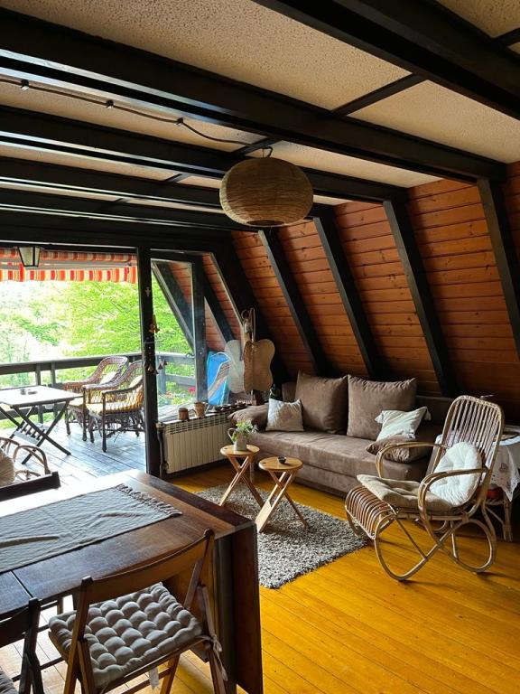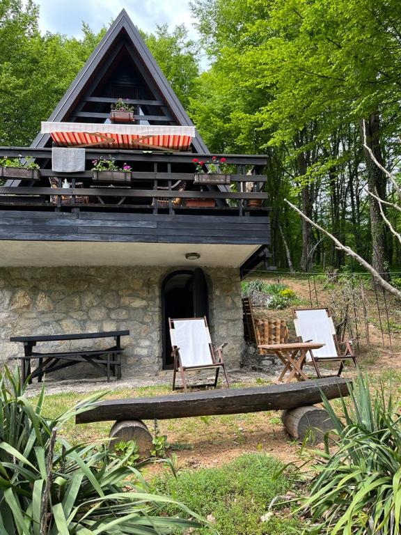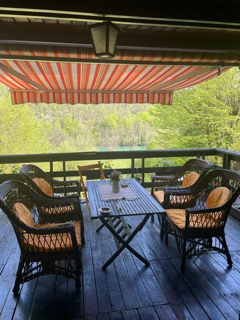 Drvena kuća za miran odmor sa dodatnim sadržajem čamcem za vožnju rijekom, roštilj, stol za stolni tenis
