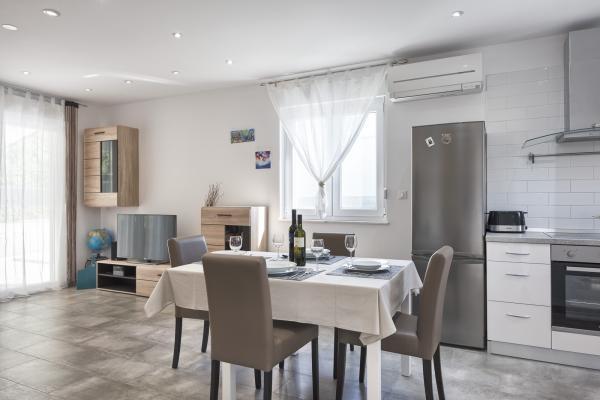 Pročitaj više Smještajne jediniceBORAVAK: minimalno 7 dana ili po dogovoru DOLAZAK: bilo koji dan – prijem od 16 sati ili po dogovoru ODLAZAK: bilo koji dan – do 10 sati ili po dogovoru NAČIN PLAĆANJA: Avans 30% ukupne cijene za potvrdu rezervacije. Razliku do pune cijene uplatiti najkasnije 30 dana prije datuma dolaska. Molimo da nas kontaktirate na hrvatskom, engleskom ili talijanskom jeziku. Boravišna pristojba uračunata je u cijenu. Cijene U HRK po srednjem tečaju HNB na dan uplate. U cijenu je uključeno: – Korištenje bežičnog interneta – Izmjena posteljine po dogovoru – 3 ručnika po osobi – Završno čišćenje – Potrošnja struje i vode u normalnim okvirima NADOPLATE: Kaucija 200, 00 € (obvezno, daje se pri dolasku i vraća nakon pregleda kuće na odlasku)