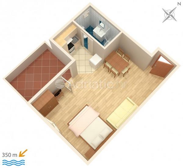 Apartman za četiri osobe plus pomoćni ležaj (45 m2)