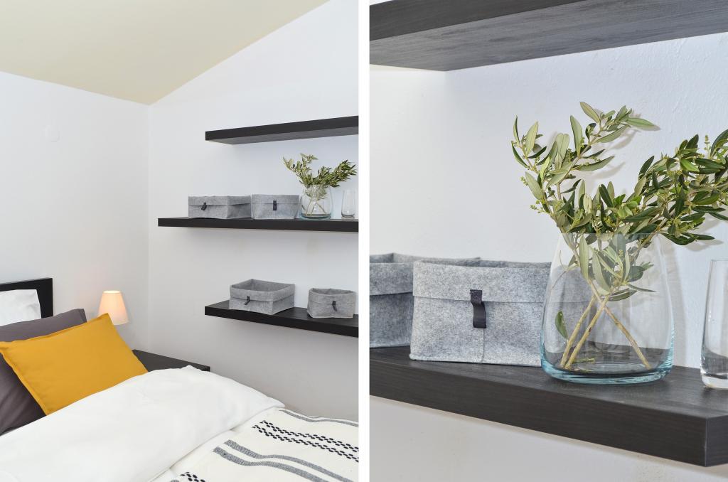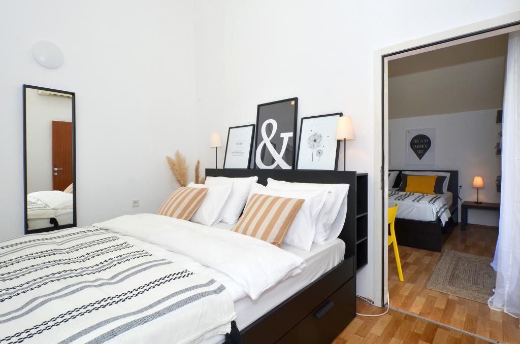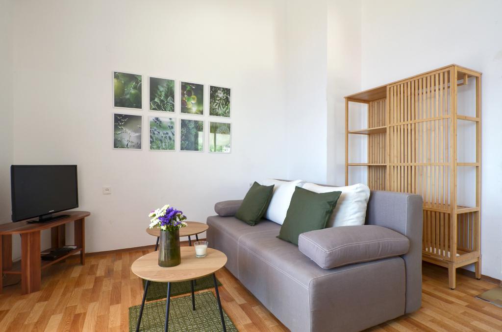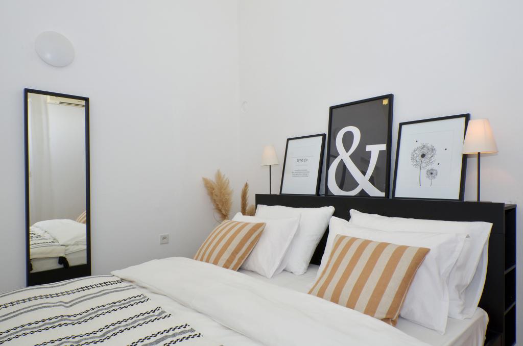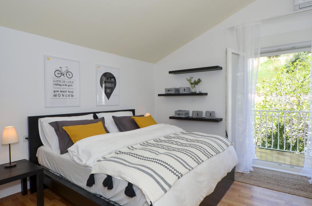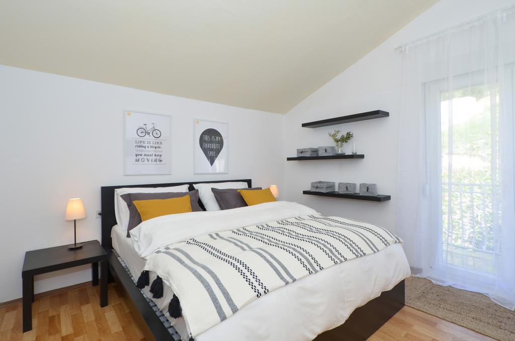Apartamni se nalaze u obiteljskoj kući na drugom i trećem katu sa posebnim ulazom. Apartman 6+0 prostire se na drugom katu kuće. Luksuzno je opremljen sa svim što vam je potrebno za kvalitetan odmor. Dva studio apartmana i jedan dvosobni apartman nalaze se u potkrovlju, te su idealni za manje obitelji ili veće društvo korištenjem cijelog kata. Poptuno opremljeni apartmani nalaze se 150 m od mora i šljunčane plaže, te 300 m od jedne od najljepših plaža između Splita i Omiša.