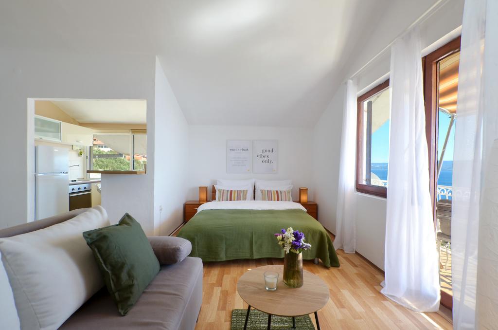 Velika mjesto za odmor, vlasnici su veliki ljudi, prekrasan pogled na more sa terase, planine, malo strme pristup na imovinu, ali su mi se naviknuti na to, na plaži smo hodali oko 6 minuta. Mi stvarno preporučiti ovu tihom i mirnom mjestu. Stan je baš kao na slikama. Mate hvala za lijep boravak, bilo je stvarno super.