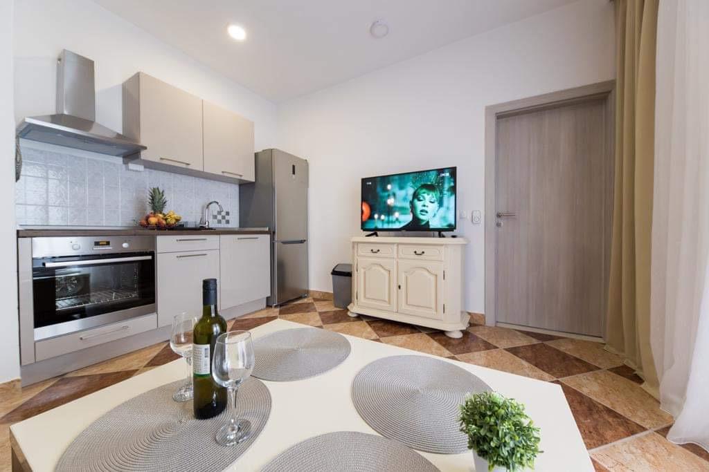 Apartmani Kristal nalaze se u mjestu Duće. Kompletno renovirani i prostrani, pružit će ugodan smještaj i odmor. Ovaj apartman sadrži: spavaću sobu, opremljenu kuhinju, TV ravnog ekrana, klima uređaj i prostranu terasu. Apartman također uključuje 1 kupaonicu. Gostima je na raspolaganju roštilj u sklopu kuće , privatni parking i besplatni wi-fi. Apartman je udaljen 100m od plaže na kojoj se nalaze restoran i caffe bar. U centru Dugog Rata, udaljenom 500m, nalaze se: supermarketi, ambulanta, ljekarna, mjenjačnica, pošta i caffe barovi. Split je udaljen 18 km od apartmana Kristal, a Makarska 34 km. Zračna luka Split udaljena je 30 km od objekta.