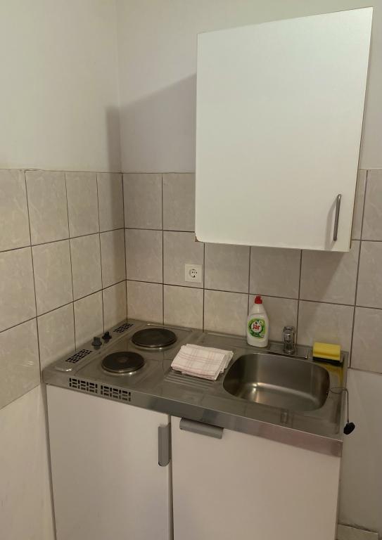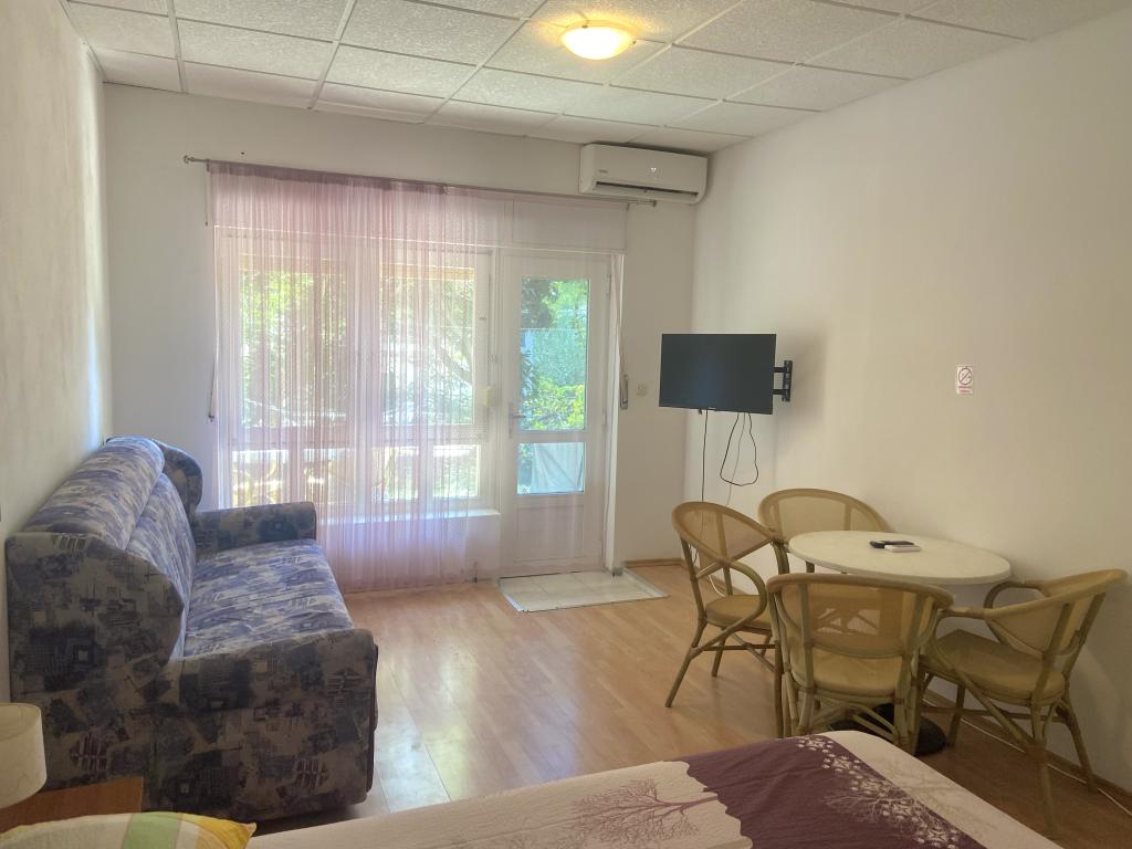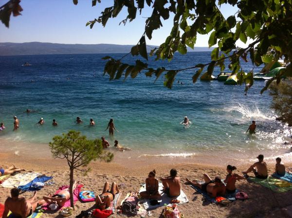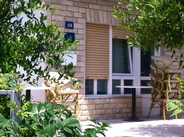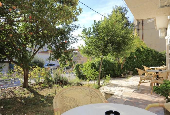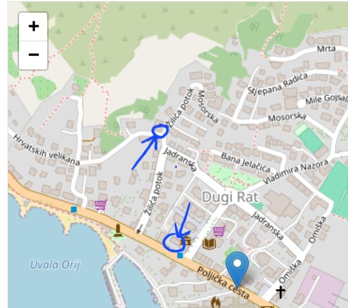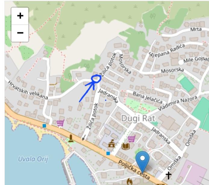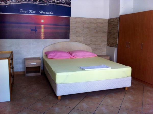 Apartman 5pp je smješten u centru Dugog Rata, prvi red do mora. Samo trebate prijeći cestu i kroz mali park stižete na centralnu, veliku, šljunčanu plažu. Uz plažu se nalazi i šetnjica duga 3 km, pogodna za ugodne šetnje u kojima možete uživati u većernjim šetnjama. Svi važni sadržaji za vaš ugodan boravak se nalaze unutar 100m od apartmana: dva velika supermarketa, pekarnica, voćarnica, ribarnica, pošta, ATM, apoteka, zubar, ambulanta, nekoliko kafića, pizzeria i restoran. Besplatno parkiranje je omogućeno ispred apartmana. Apartmani Studio 1 i 2 su samo 100 metara udaljeni od mora. Uz apartman je na raspolaganju i korištenje terase i cvjetnog vrta. Gril vam je također na raspolaganju.