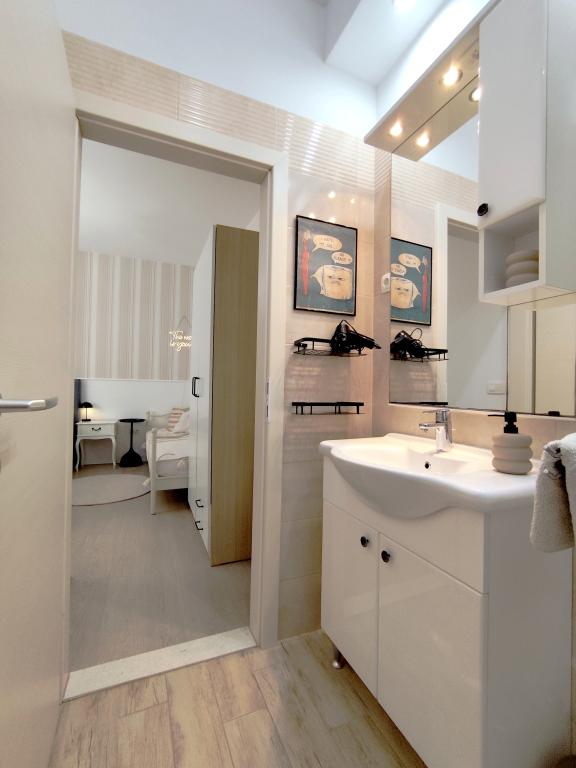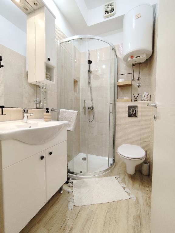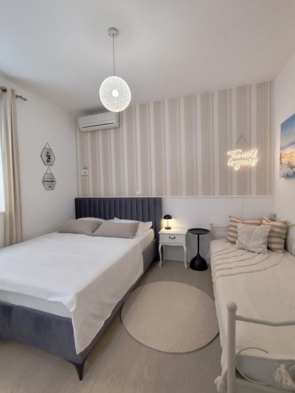 Apartman je prekrasan, čist, vrlo udoban i namješten s puno ukusa i ljubavi. Osjećali smo se kao kod kuće; sve što nam je trebalo bilo je tamo. Ogromna, ukusno namještena terasa i, prije svega, more su na korak od nas. Vrlo ljubazna domaćica. Hvala vam na gostoprimstvu! More je kristalno čisto, a ležaljke i suncobrani bili su spremni za nas. Sve što vam je potrebno za prekrasan odmor. Sve je bilo jednostavno fantastično; odlično smo se odmorili.