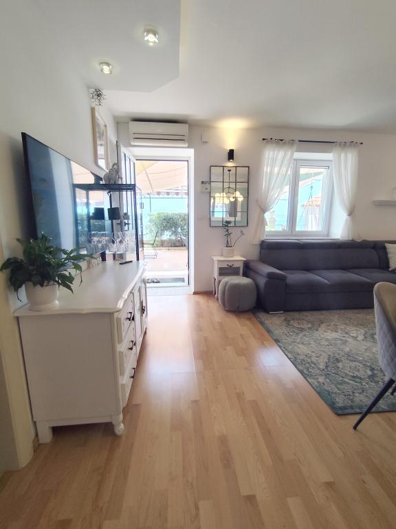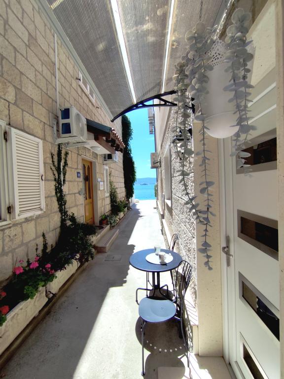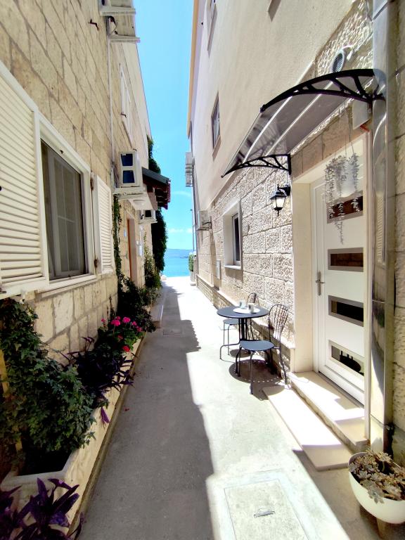 Za one koji žele mir i udobnost, ovo će mjesto biti 100% pogodno. Pravo na plaži, čisto, uredno, ležaljke, tuš. Pored šanka vodeni skuteri. Domaćini su oduševljeni, tihi, smiruju, daleko od gomile turista. Izvrsno za djecu, blizina vode, plaže, Na plažu ne morate ništa nositi jer je plaža na korak od apartmana. Ima parkiralište. Ako vam nedostaje pogled na grad i turiste, vozite se autobusom do Omišije manje od 10 minuta. Svake godine jesam i bit ću na ovom mjestu. Ja bih preporučio.