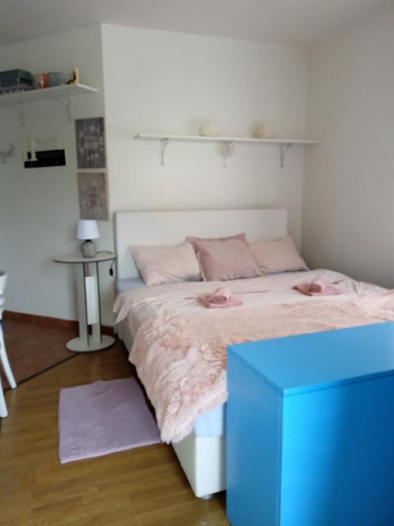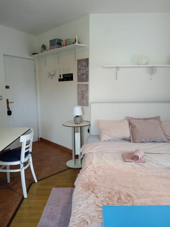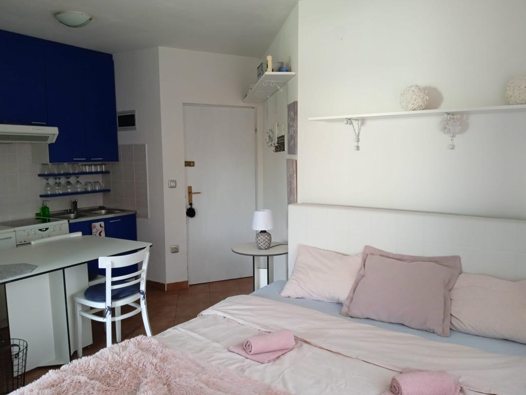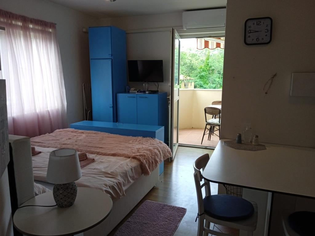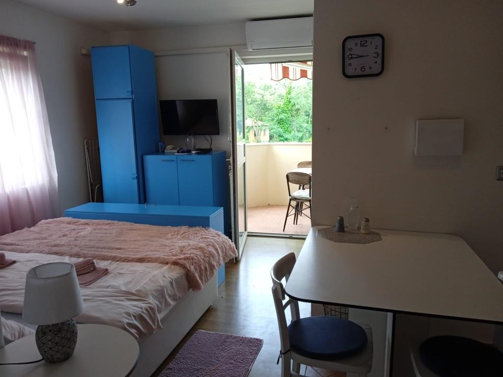 Moderno uređeni studio apartman nalazi se u neposrednoj blizini mora (350 m), Plodina (20 m) i autobusne stanice (300 m). Od Pule je udaljen 5 km. Apartman ima balkon od 7 kvadrata s pogledom na zelenilo. Opremljen je klima uređajem, TV-om, indukcijskim štednjakom, električnom i mikrovalnom pećnicom, kuhalom, perilicom rublja te ima pristup internetu.