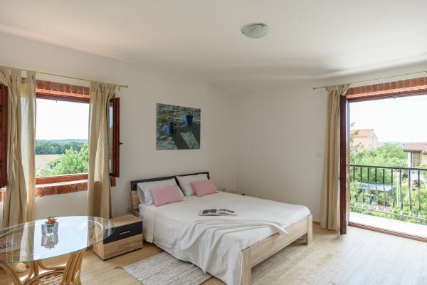 Dobrodošli dragi gosti! Naša i vaša kuća za odmor sastoji od 4 sunčana i prostrana apartmana. Svaki ima 2 sobe i 2 kupaonice, dnevni boravak sa opremljenom kuhinjom i terasom. U dnevnom boravku je veliki kauč na razvlačenje za dodatne 1-2 osobe, sveukupno za 5-6 osoba. U prizemlju se nalazi velika opremljena terasa s bunarom, gdje je moguće jesti na otvorenom i koristiti za roštilj. Okućnica se sastoji od zelenog vrta i dijela gdje je moguće parkirati auto. Smještaj se nalazi u Valbandonu, mirnom kvartu 2km od plaže i 3km od Fažane, jedan od zadnjih slikovitih ribarskih mjestašca na ovom djelu mediterana. Market, banka, pošta i druge usluge su udaljene 2-3km. U okolici Valbandona i Fažane ima puno šljunčanih i stjenovitih plaža.