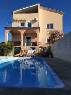 U mirnom dijelu naselja Valbandon smještena je kuća sa bazenomi dvorištem. U kući se nalaze tri apartmana od kojih svaki apartman ima poseban odvojeni ulaz. Apartmani su kompletno uređeni za ugodan boravak gostiju. Kuća je udaljena 15-ak minuta hoda od lijepo uređene plaže. Centar Fažane je udaljen 2km. Cijelo naselje ima jako puno pješačkih i biciklističkih staza te vinskih cesta. Idealno za miran i relaksirajući odmor. Gosti koji žele više izlazaka i noćnog života imaju svako večer u Fažani ili Valbandonu organizirane tematske večeri, fešta od srdela, rapsodija u plavom, Valbandon ispod čripnje, škola soljenja srdela, te razne druge manifestacije za svakog gosta. Od sezone 2020 u ponudi je i vanjski bazen.